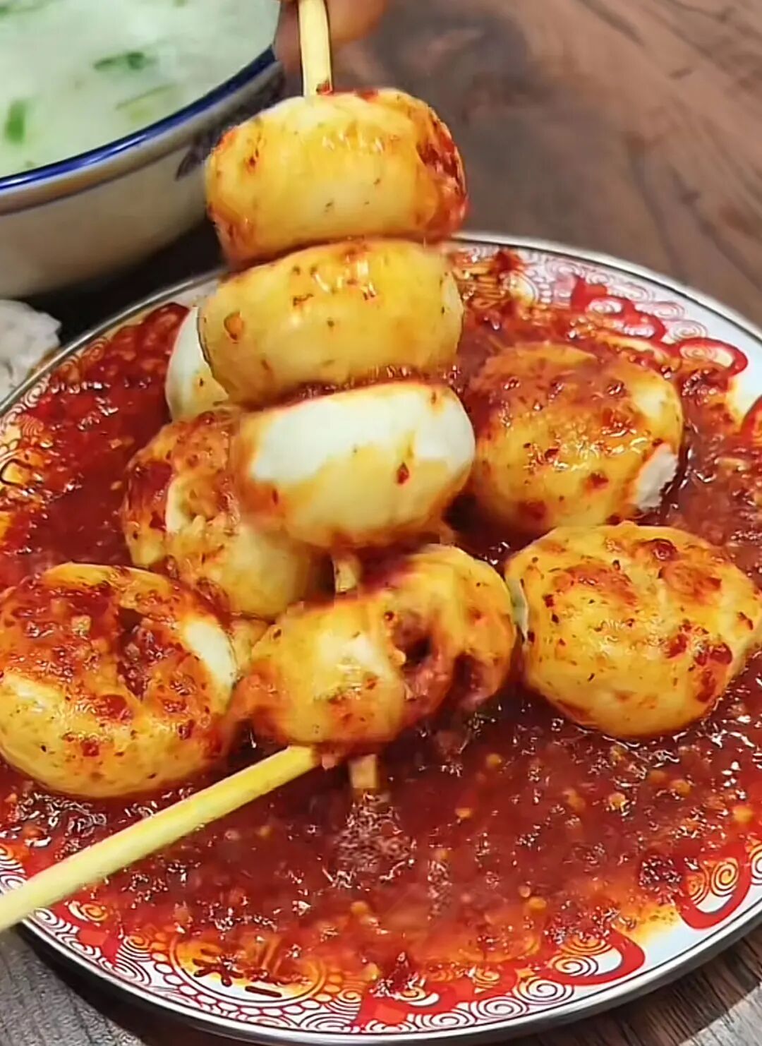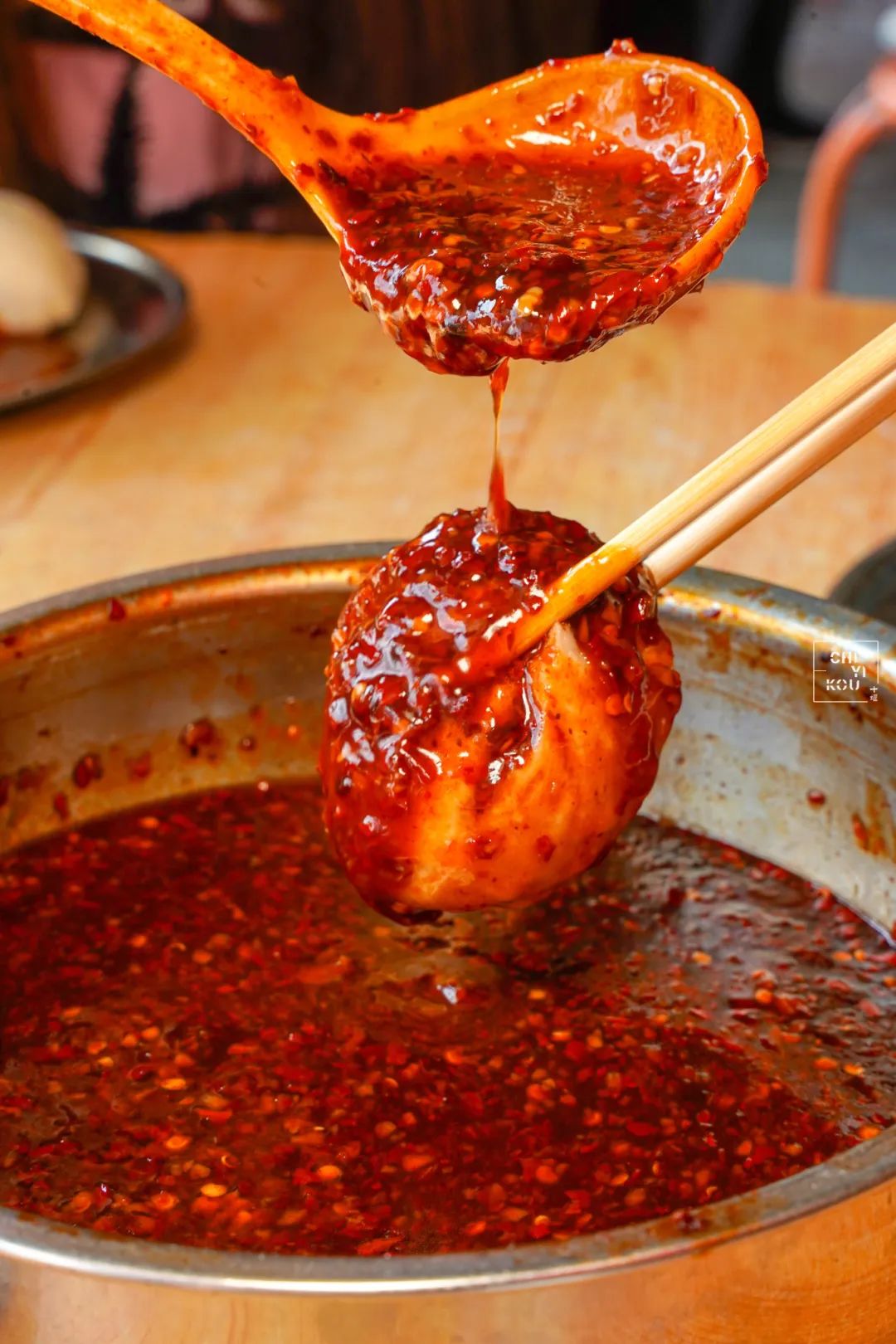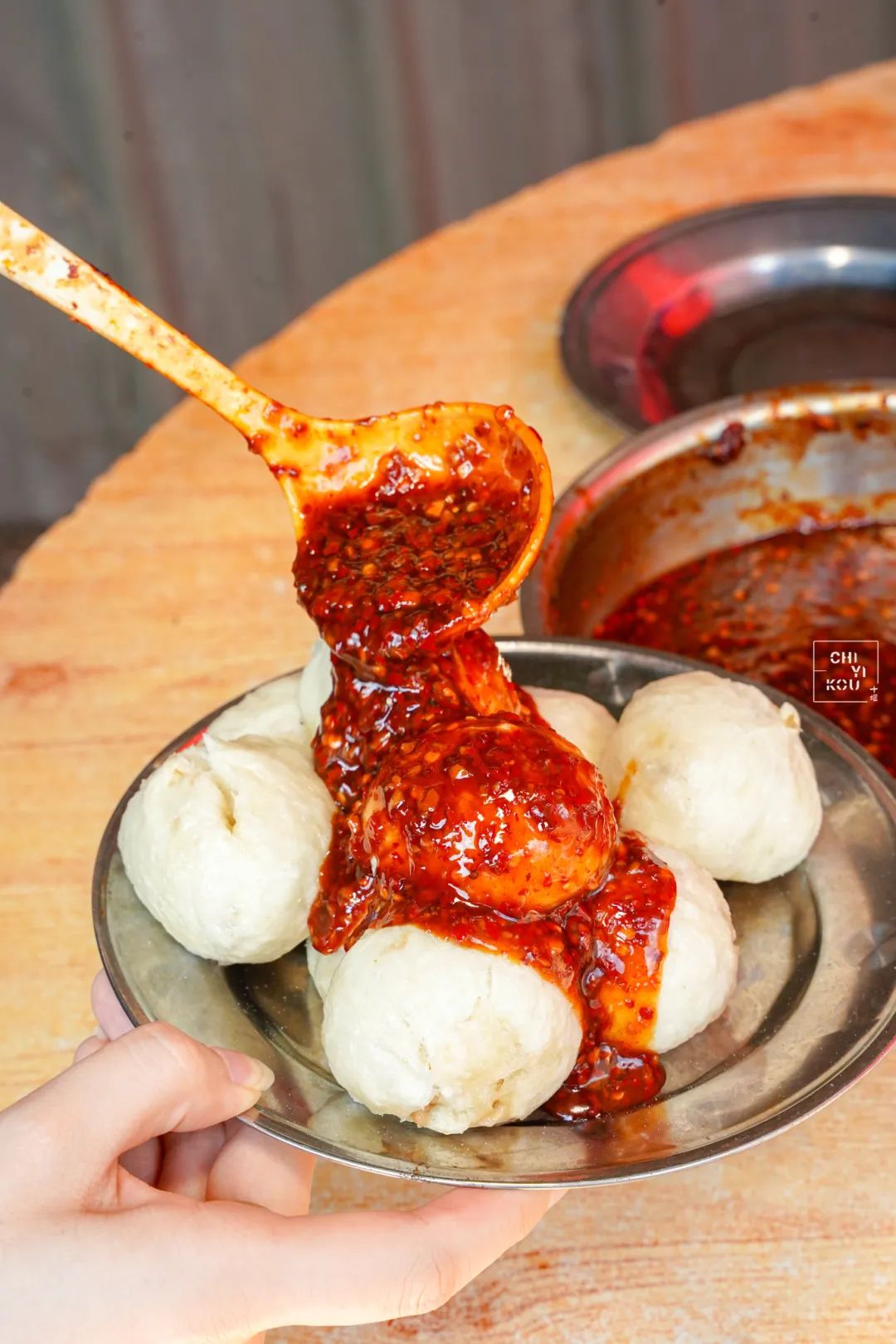 愛吃辣的人先將包子咬上一口漏出一個洞,再舀上一小勺辣椒醬灌進包子里。那滋味,無法言喻了!