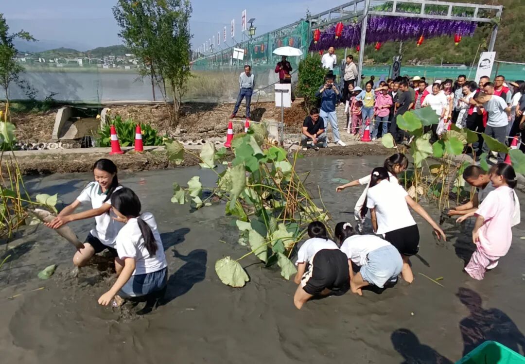 他們時而俯身摸索,時而快速出擊與青蛙和魚兒展開了一場有趣的較量。現(xiàn)場氣氛輕松愉悅,人們在享受比賽的同時沉浸體驗豐收的喜悅和鄉(xiāng)村生活的樂趣。