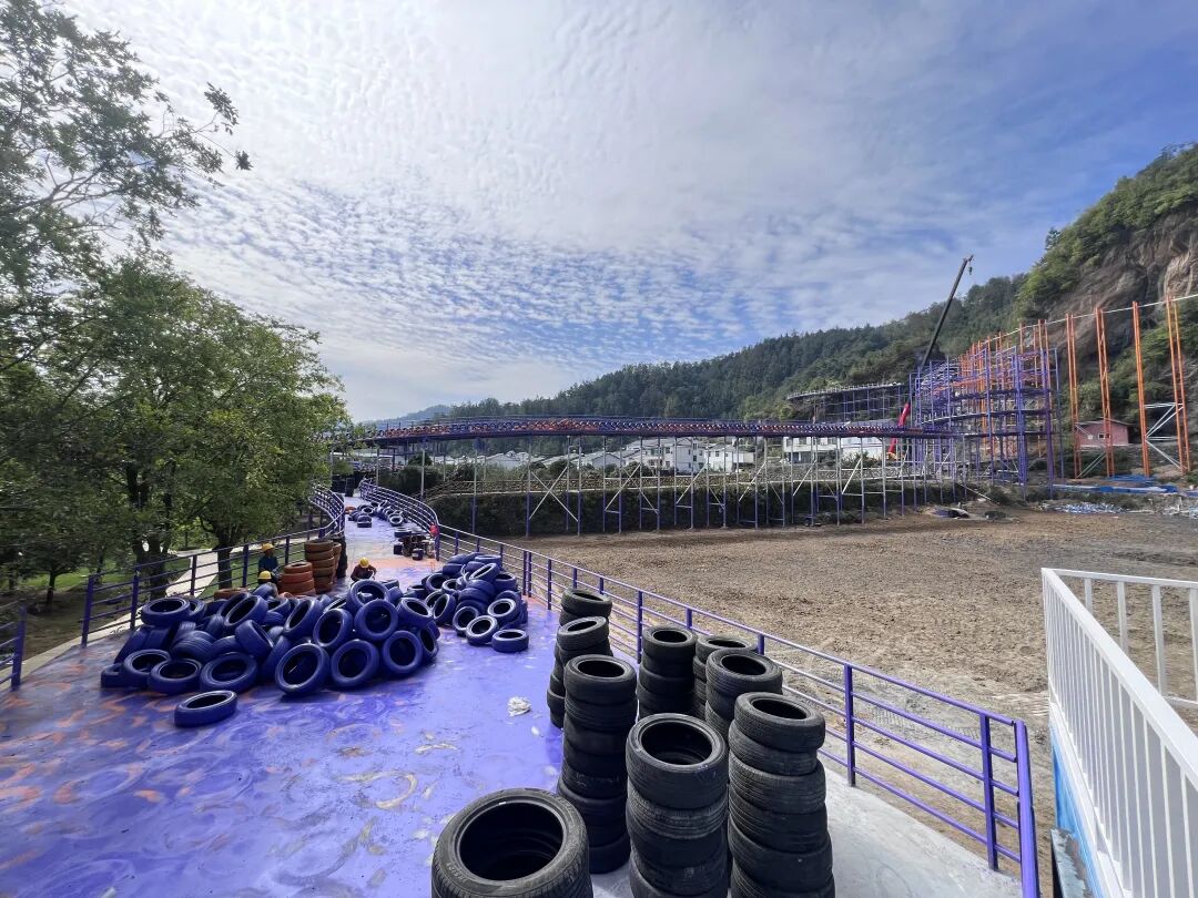 正在加緊建設的二期項目——山地飛車,是該景區(qū)的特色旅游項目,在省內尚屬獨家首創(chuàng),屆時不僅可以讓游客在俯沖中體驗刺激與驚險,還能高空俯瞰小鎮(zhèn)的美景和風光。