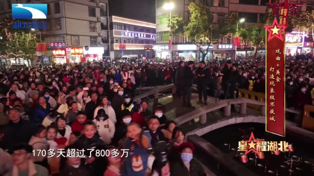 張海濤:武陵不夜城實際上有兩個核心,一個是它的文化,武陵不夜城的文化核心是竹溪山二黃,竹溪山二黃是我國380多個戲種之一,它同時也是漢劇之母;第二個就是在產業上,主要是以竹溪美食為主,因為咱們竹溪縣是地處大巴山地區,歷史上這個地方是經歷了幾次大移民的,這種移民文化就造就了餐飲的特色和文化。當武陵遇到了竹溪,當戲曲遇上了美食,那么實際上就是武陵不夜城應運而生。我們是2023年12月30號開業的,開業至今,我們的運營情況確實也很好,確切地說,到昨天我們的人流量已經超過了850萬。