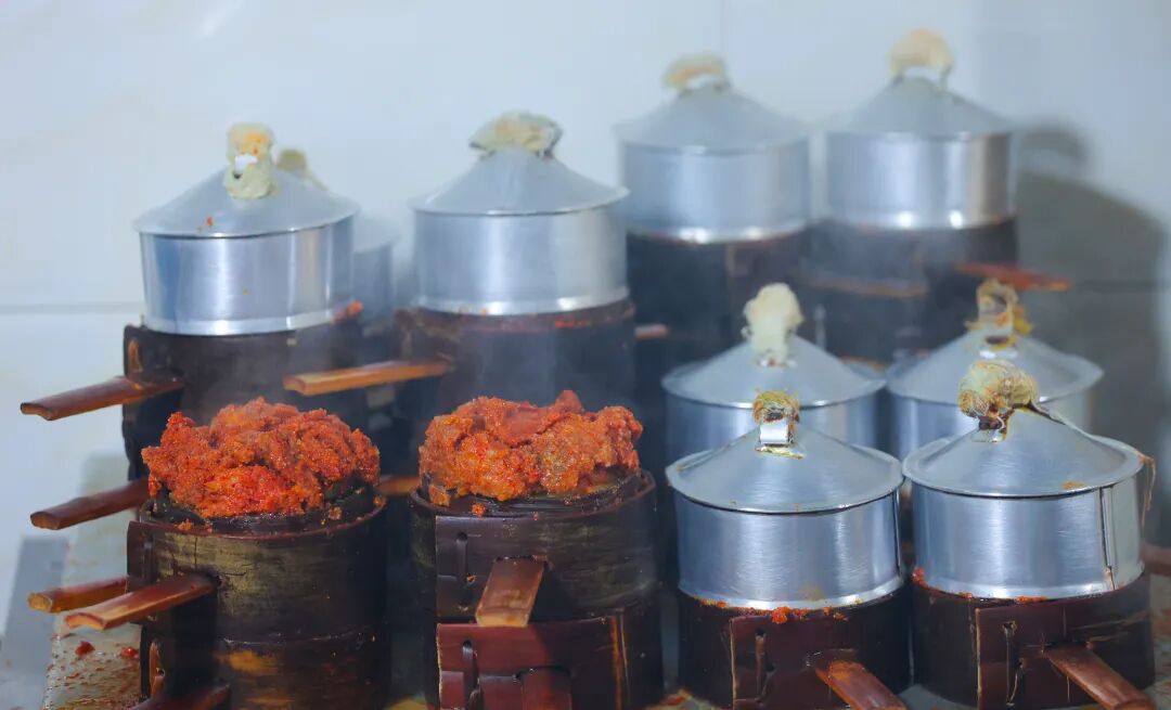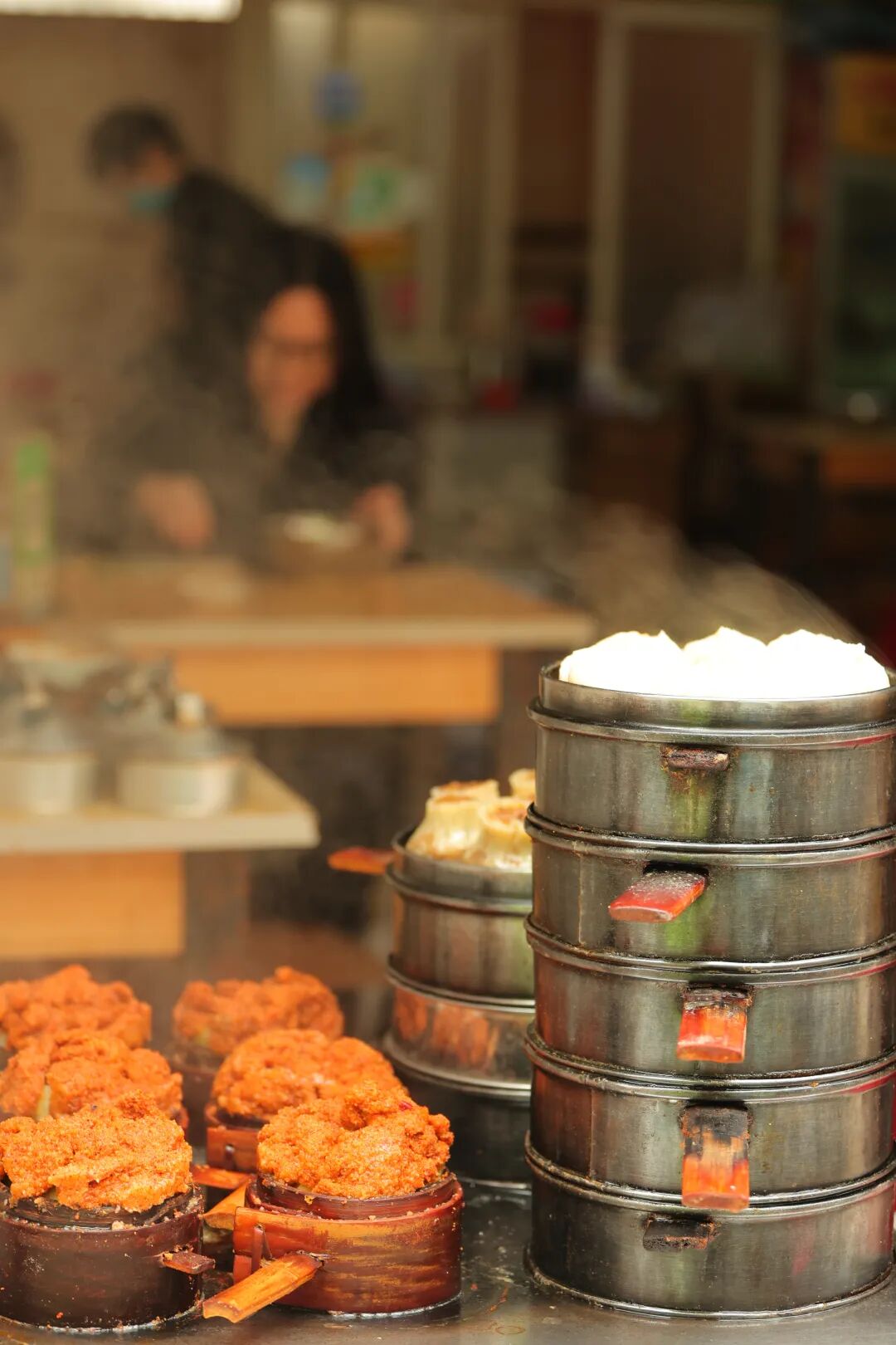 爐子上的小蒸籠往往多層摞起來,竹溪人俗稱一層為一“格格兒”。這“格格兒”里的肉或肥腸夾起一塊放入口中,香味蔓延開來,爽滑細嫩,入口微辣,更有香味從鼻腔里往外冒。