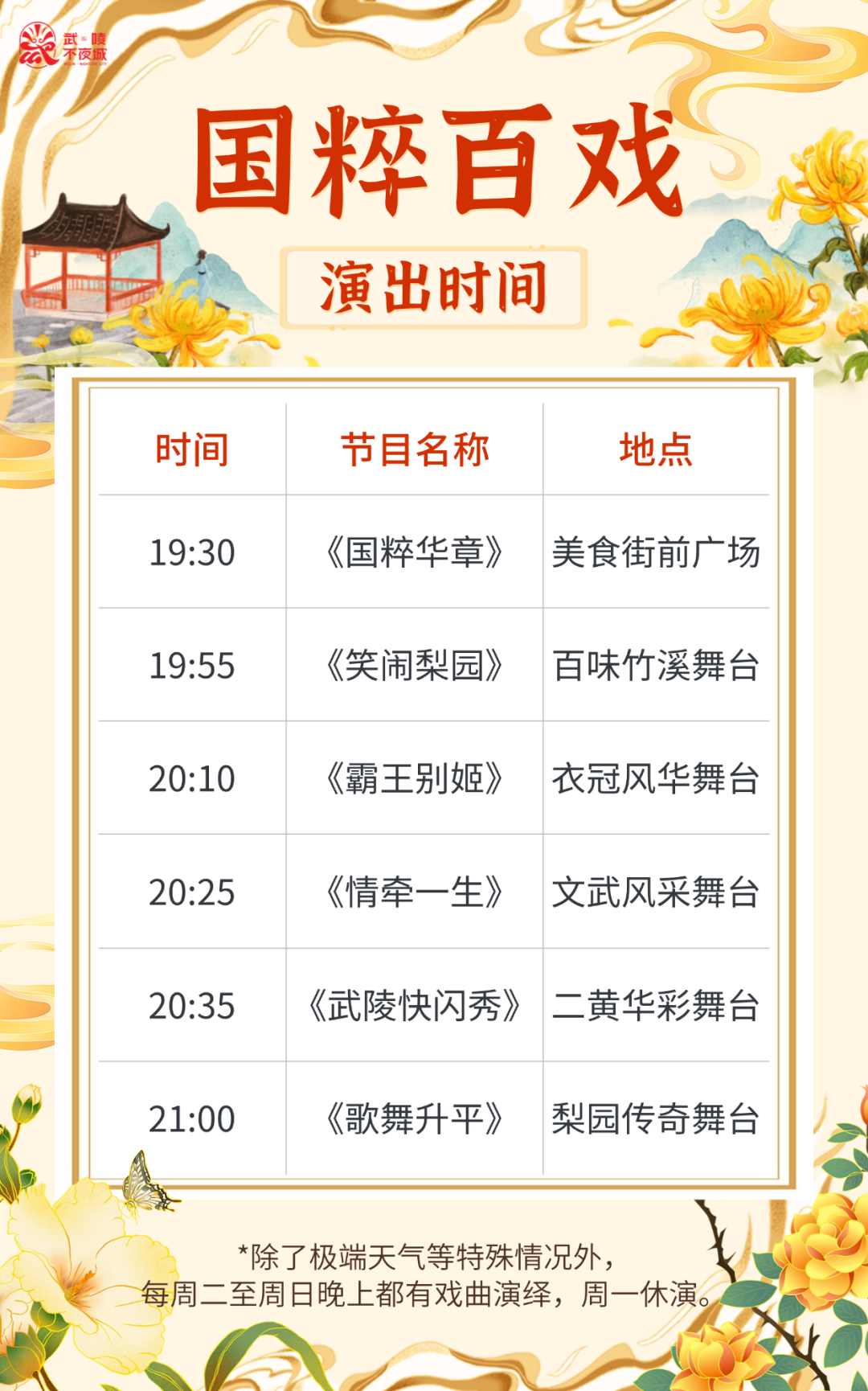 深秋的夜晚帶著一絲涼意與寧?kù)o,正是走進(jìn)武陵不夜城感受傳統(tǒng)戲曲魅力的最佳時(shí)節(jié)。讓我們?cè)谏钋锏脑律?,共同拉開(kāi)一場(chǎng)視覺(jué)與聽(tīng)覺(jué)盛宴的序幕。