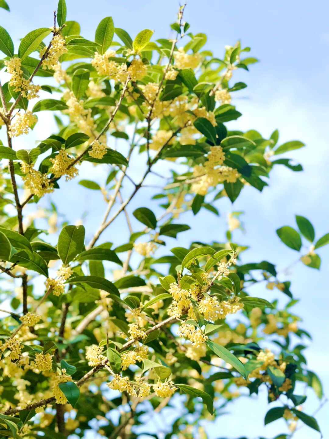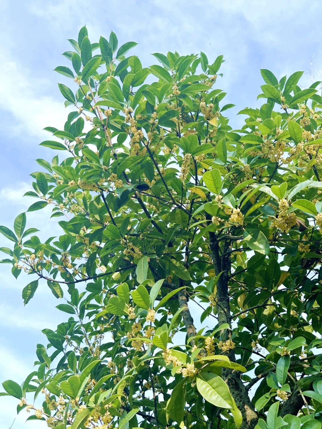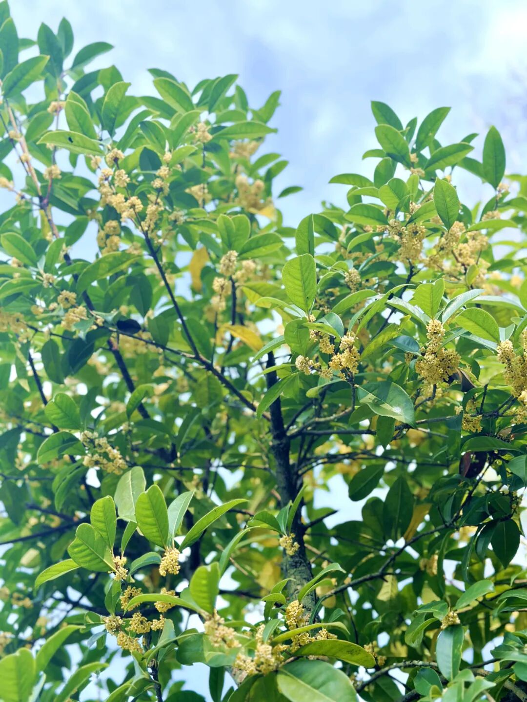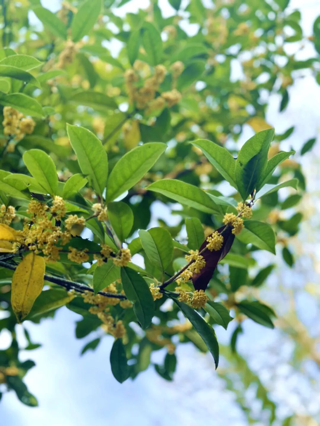 走進半山腰的桂花林,仿佛置身于一個童話世界:金色的金桂、橙黃色的丹桂和淡黃色的銀桂……各自綻放著各自不同的姿態,細碎的金色花瓣宛若星星般緊促地點綴在郁郁蔥蔥的綠葉間。