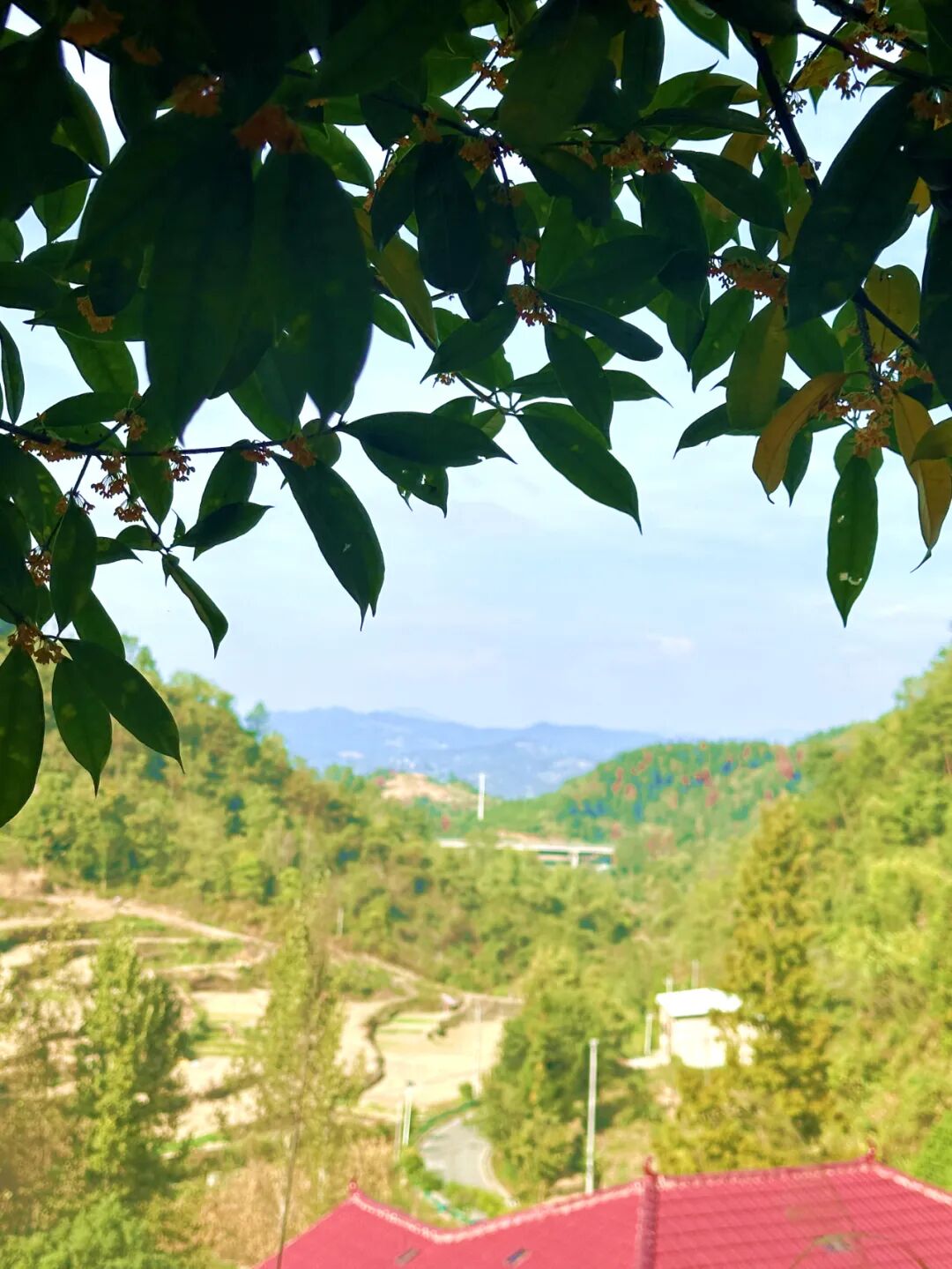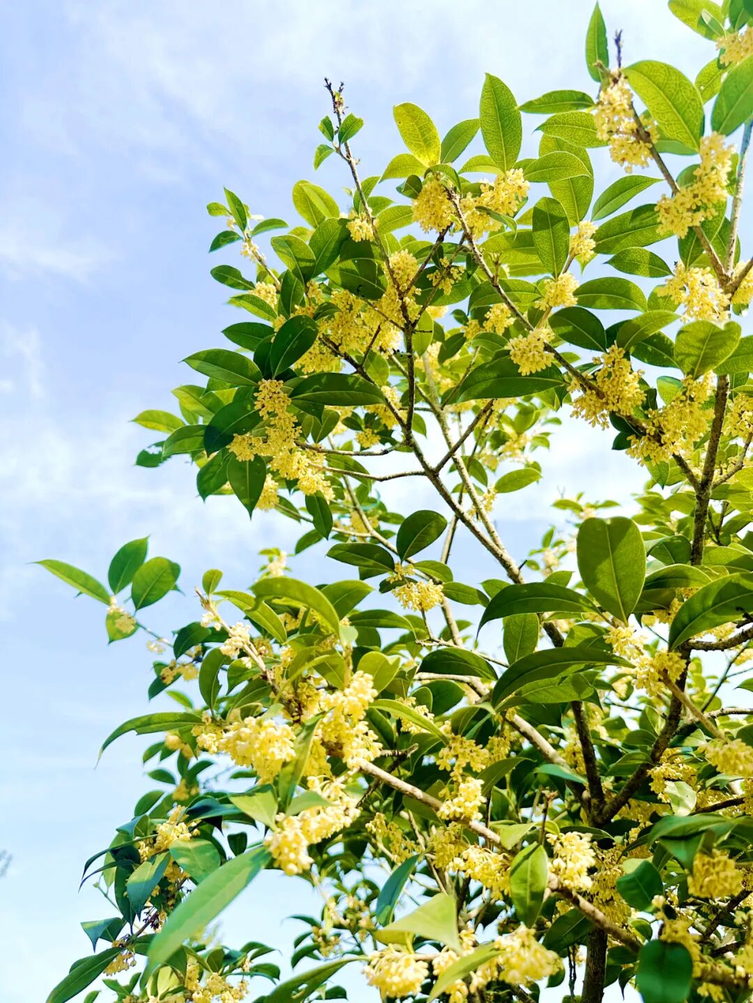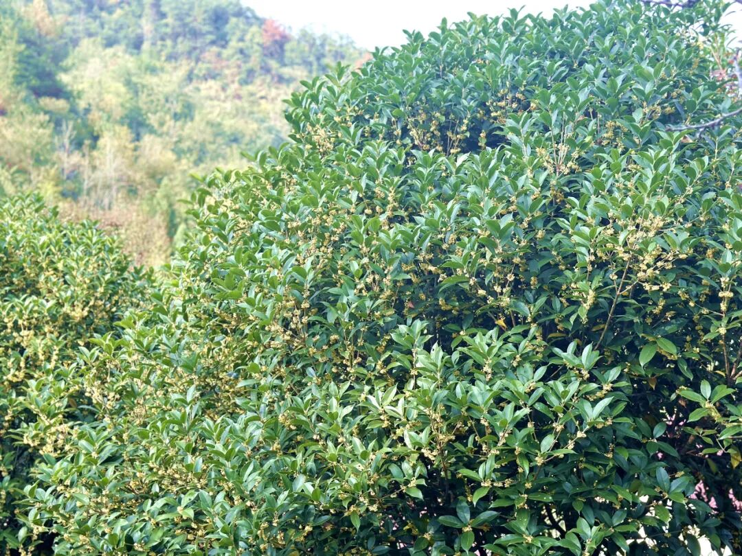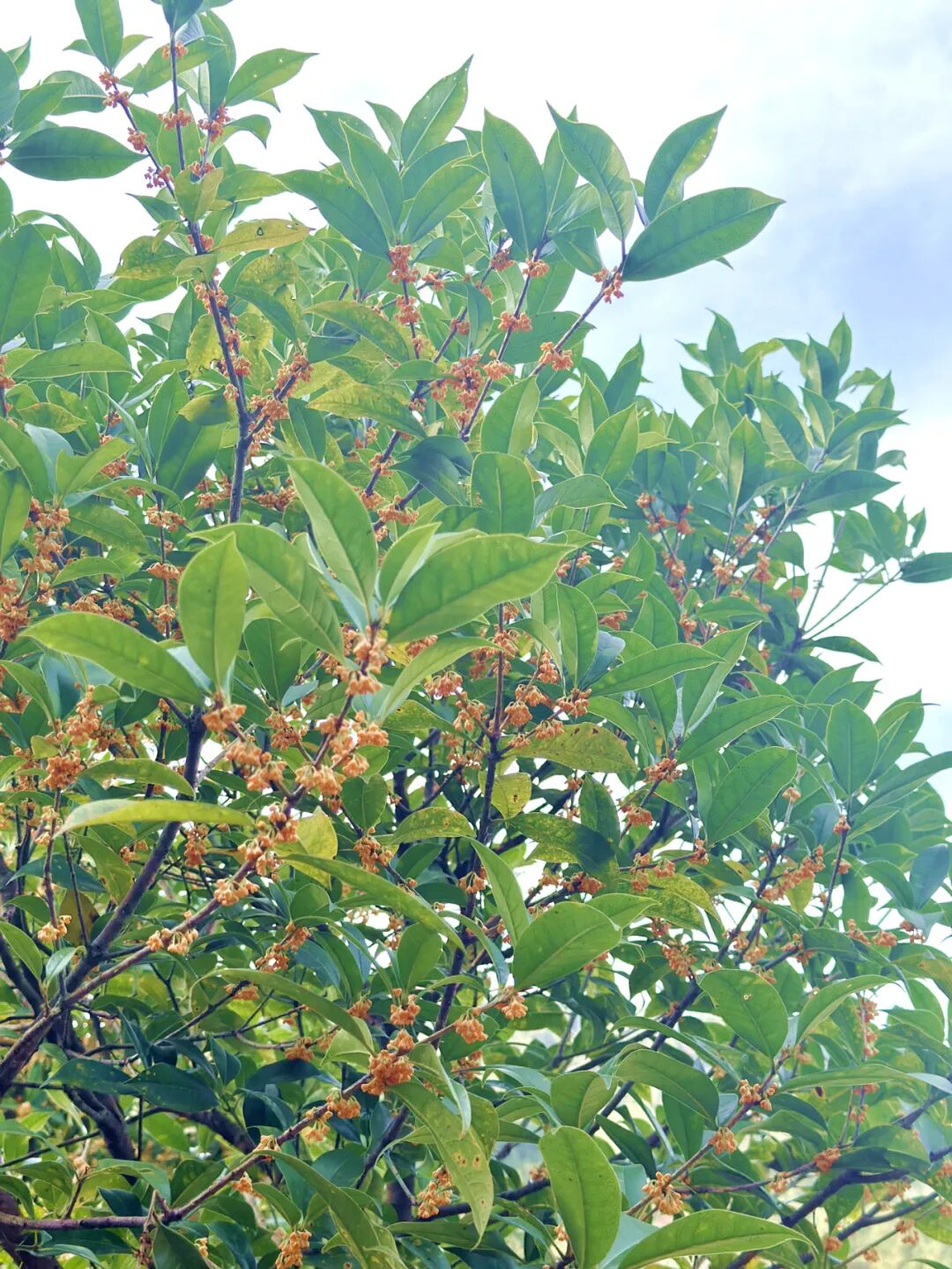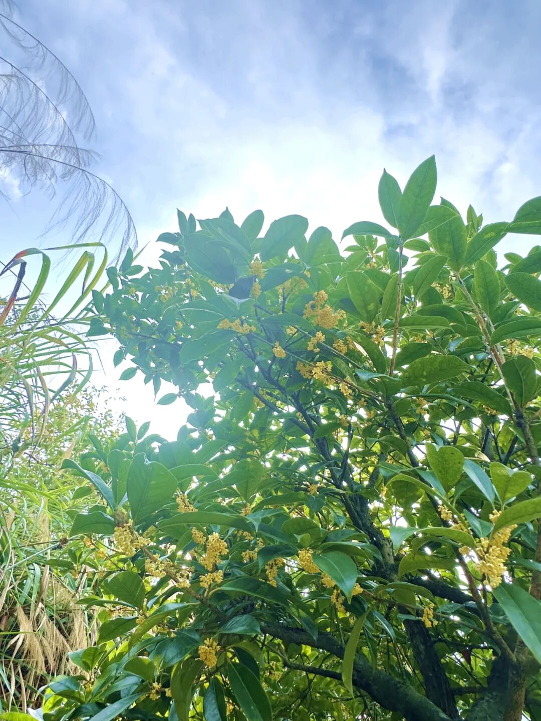 走進半山腰的桂花林,仿佛置身于一個童話世界:金色的金桂、橙黃色的丹桂和淡黃色的銀桂……各自綻放著各自不同的姿態,細碎的金色花瓣宛若星星般緊促地點綴在郁郁蔥蔥的綠葉間。