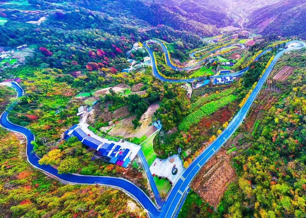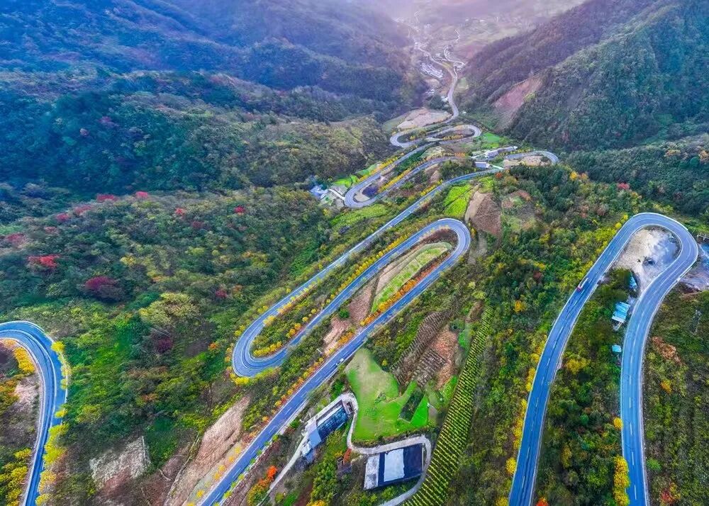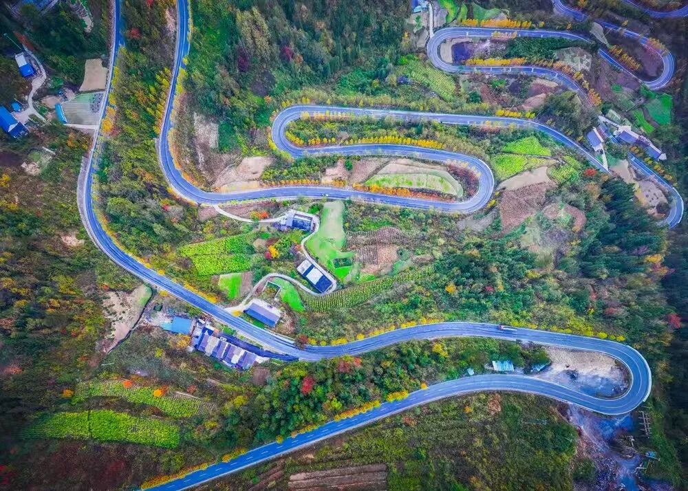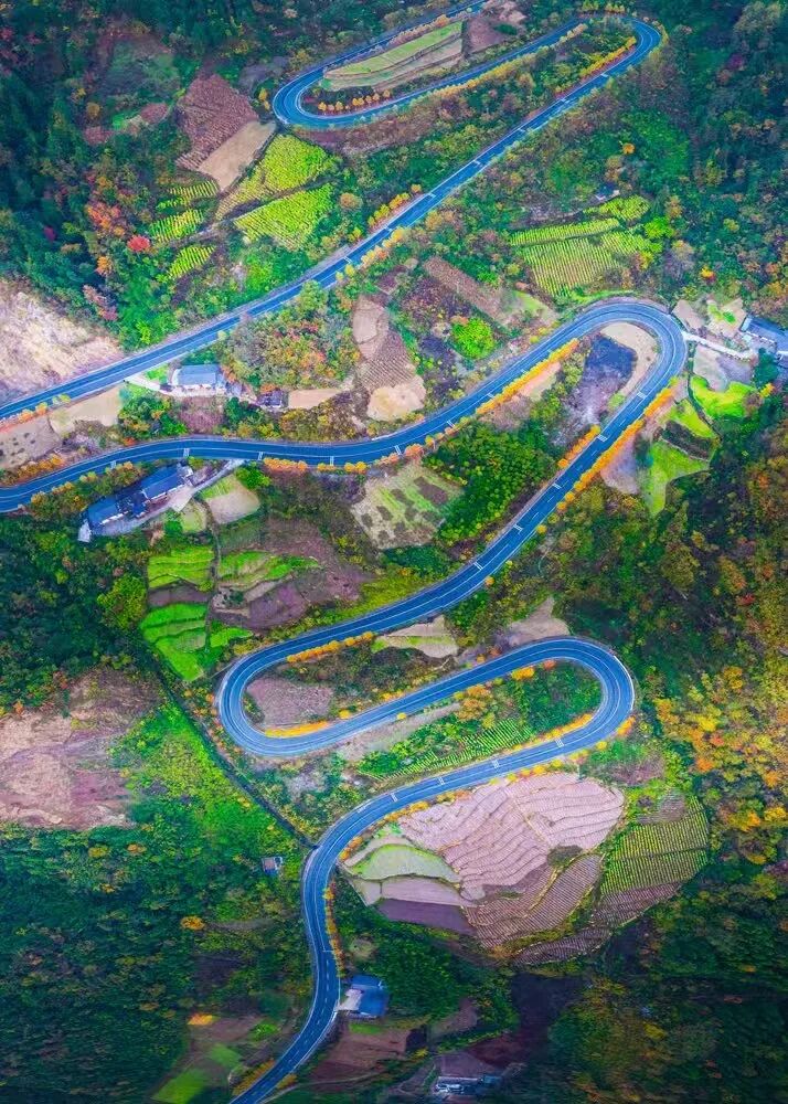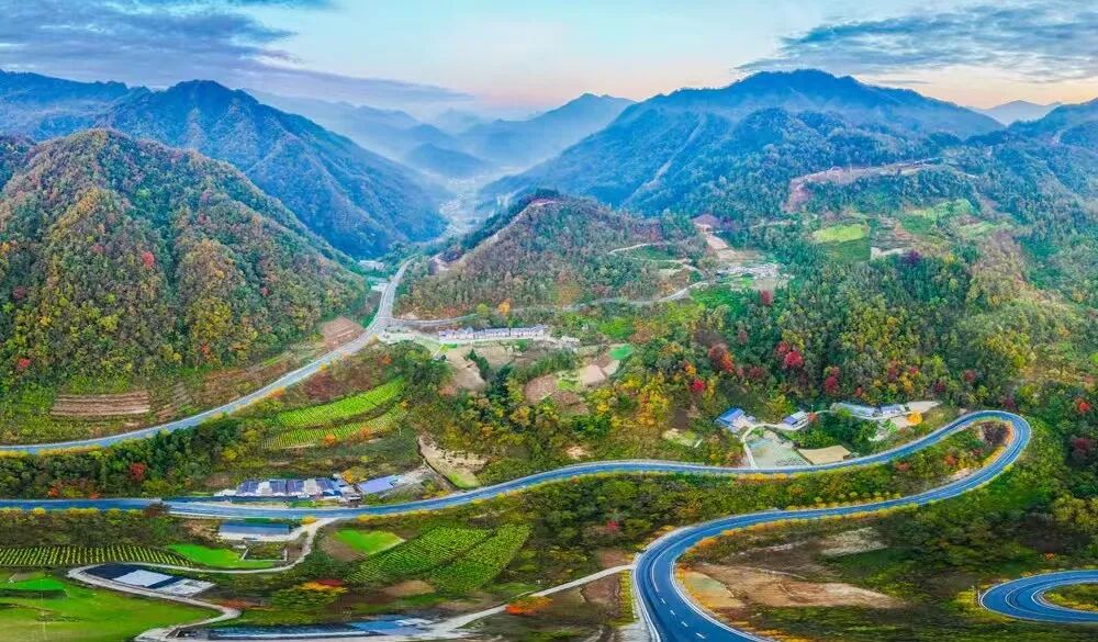 入冬,竹溪縣泉溪鎮成佳河村,蜿蜒的公路穿過紅葉染紅的山崗,連貫秀美的村莊,構成一幅現代版富村山居圖景。