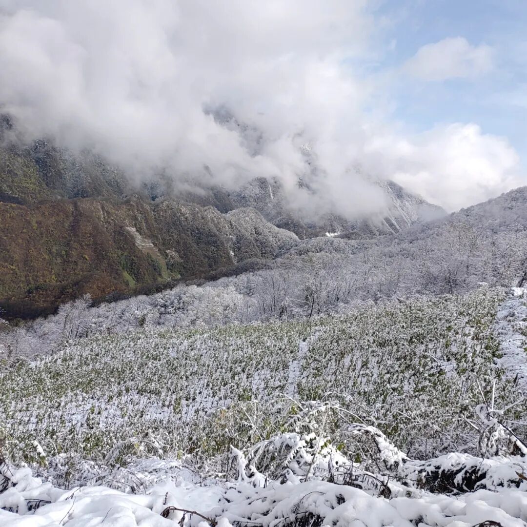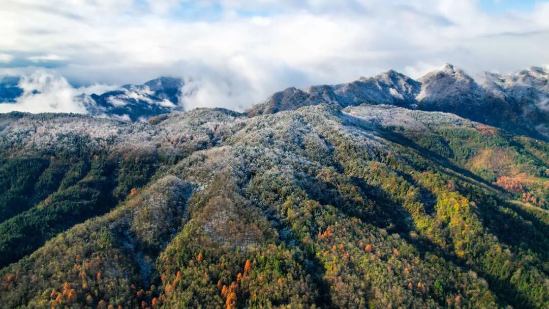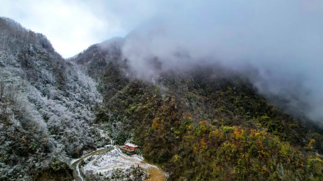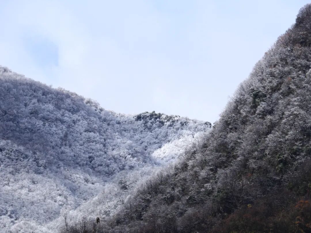昨天,偏頭山國家森林公園、國營綜合農場楊家扒分場、桃源鄉、鄂坪鄉也迎來了今年冬天的首場降雪。遠處的山巒在這場初雪的覆蓋下展現出了一幅截然不同的壯麗畫卷,那些平日里或青翠欲滴或層巒疊嶂的山峰,此刻都被披上了一層厚厚的白雪,宛如披上了一層潔白的紗幔,顯得更加神秘而莊嚴。
