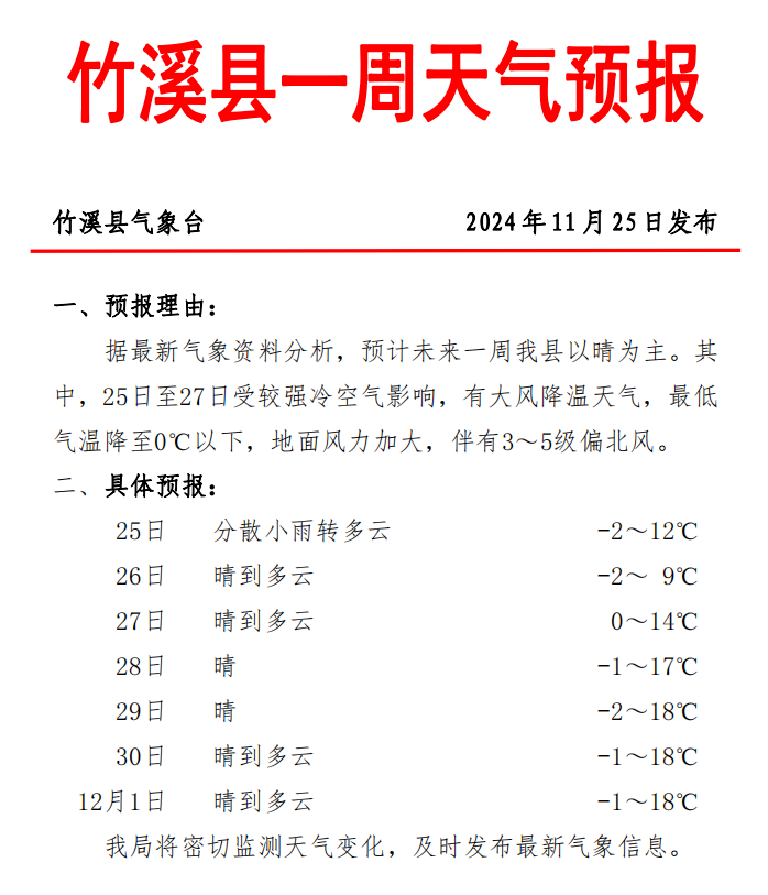 1.未來一周竹溪縣有大風降溫天氣,需做好田間管理,確保冬季農業生產用水;