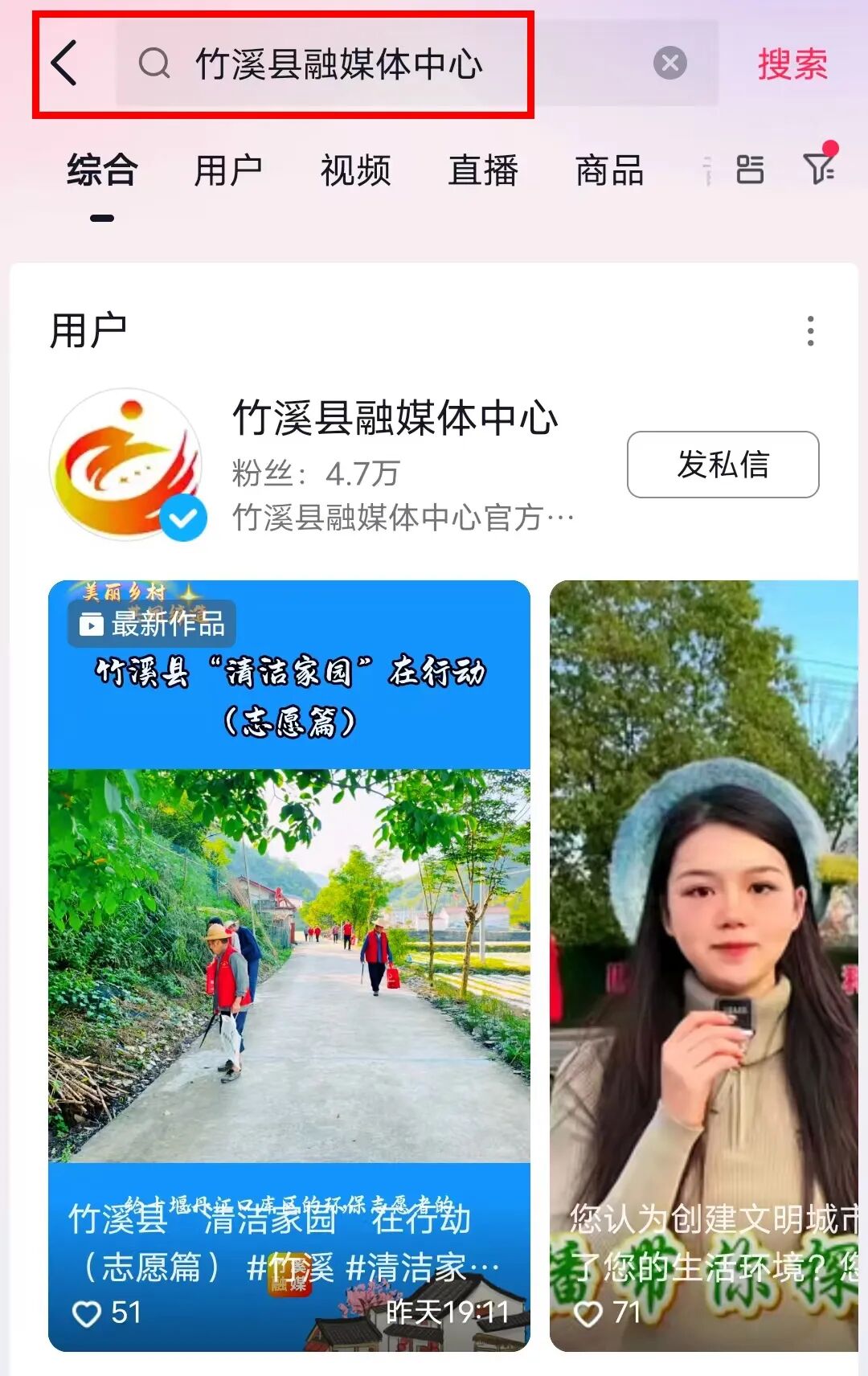 或者在搜索框內輸入抖音號【ZXRM】(*“竹溪融媒”首字母)關注【竹溪縣融媒體中心】官方抖音,準時收看直播。