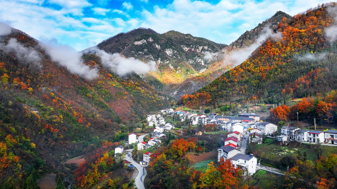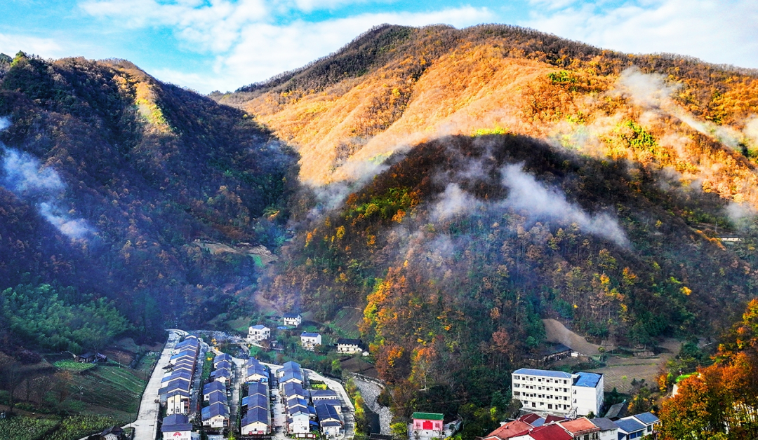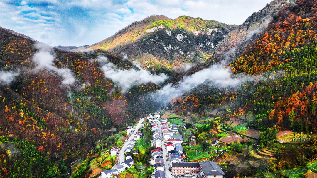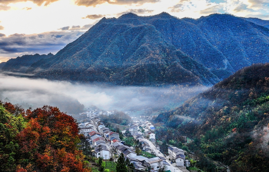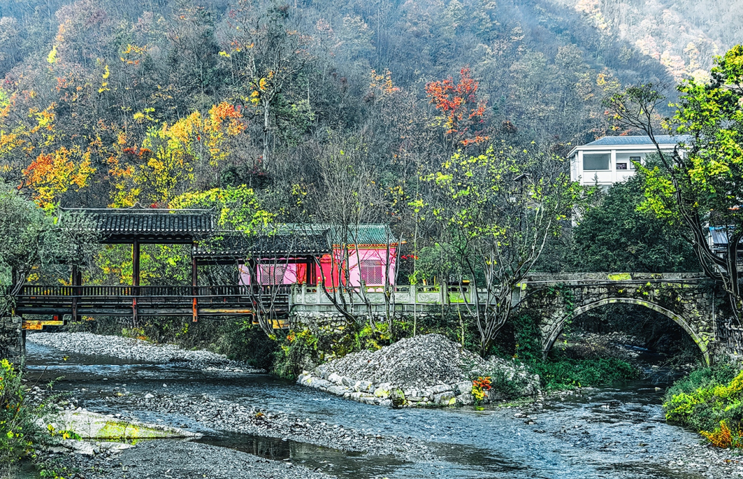 冬天,潺潺的流水山澗從冰中迸出,歡快而安靜地流淌,與村莊、群山相映成景,宛如一幅絕美的水墨畫卷。