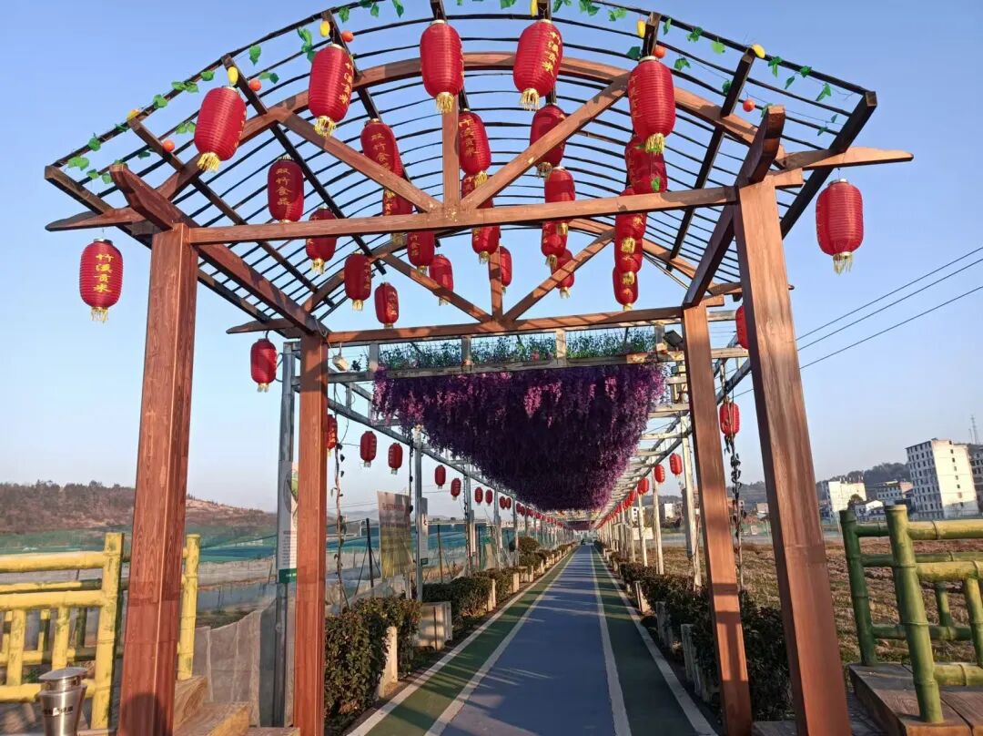 此外,游客還可在園區露營,盡情享受幕天席地所帶來的無限歡樂;可去蒸蒸日上點位觸摸貢米文化發展脈絡,感受千年古韻;紫藤傾瀉而下的長廊更是熱門打卡點……