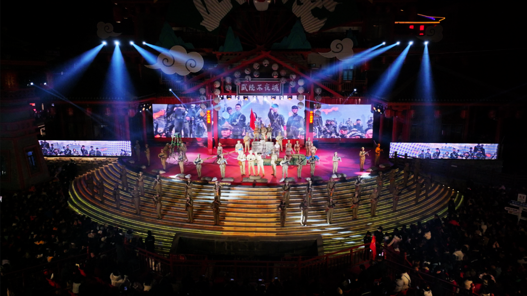 竹溪文旅商業(yè)運(yùn)營管理有限公司執(zhí)行董事陳萌介紹,該部劇不僅延續(xù)了前兩季的經(jīng)典特色,更在劇情、人物和表現(xiàn)形式上進(jìn)行了全面的升級。通過再現(xiàn)戰(zhàn)爭年代那些家喻戶曉的英雄人物、再唱那些膾炙人口的紅色歌曲和戲曲唱段,讓觀眾重溫那段激情燃燒的歲月,接受一次愛國主義的洗禮,從而增強(qiáng)每一位觀眾的國家榮譽(yù)感和民族自豪感,不僅展示了武陵不夜城對傳統(tǒng)文化的傳承與創(chuàng)新,以及對紅色文化的弘揚(yáng)和傳播,更讓傳統(tǒng)文化在新時代綻放出更加耀眼的光芒。