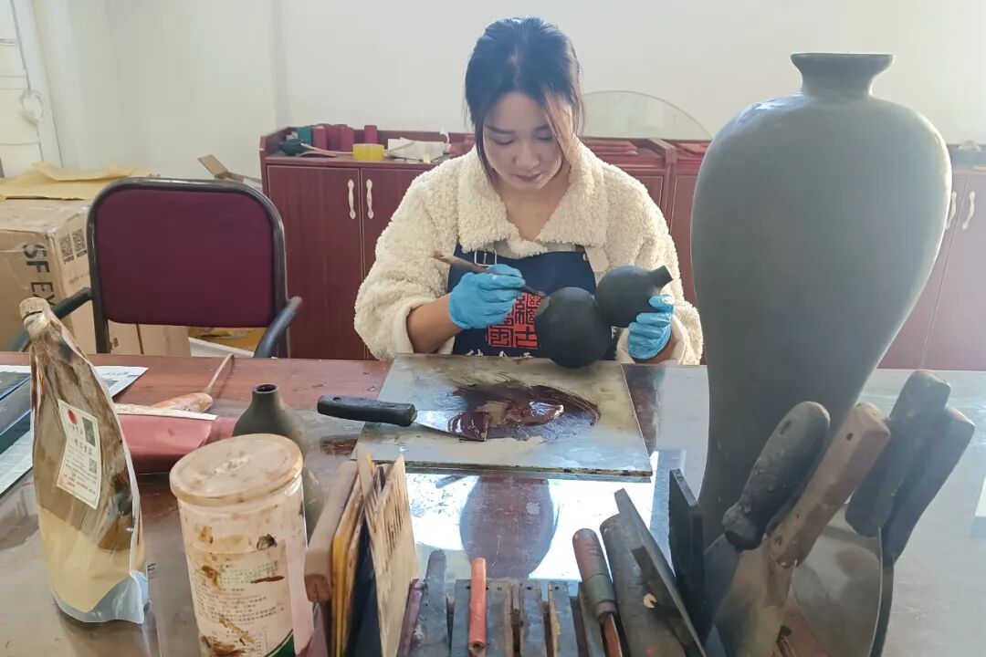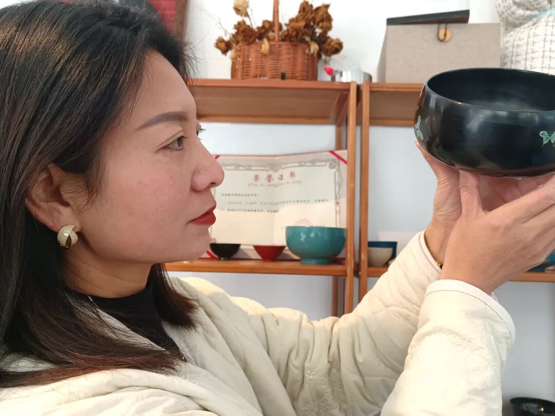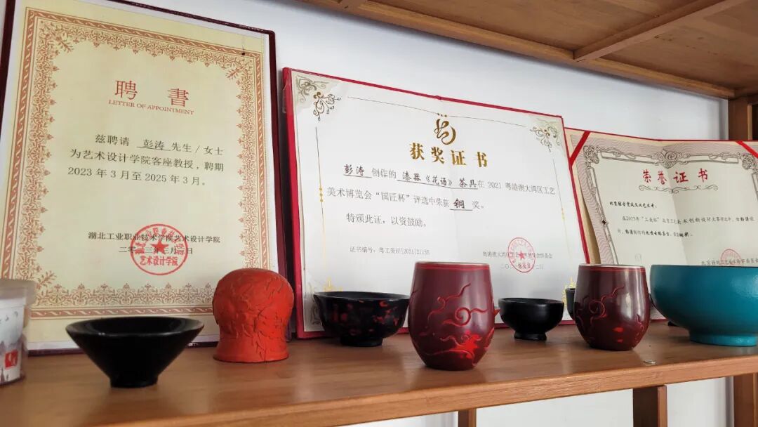 交談得知,彭心竹是土生土長的竹溪人,其父親彭濤一直從事生漆產業,從小的耳濡目染讓她對漆器展現出來的東方之美產生濃厚興趣。經過大學3年對雕漆花、絲鑲嵌技藝的學習,她更加堅定從事生漆文化事業的信心和決心。