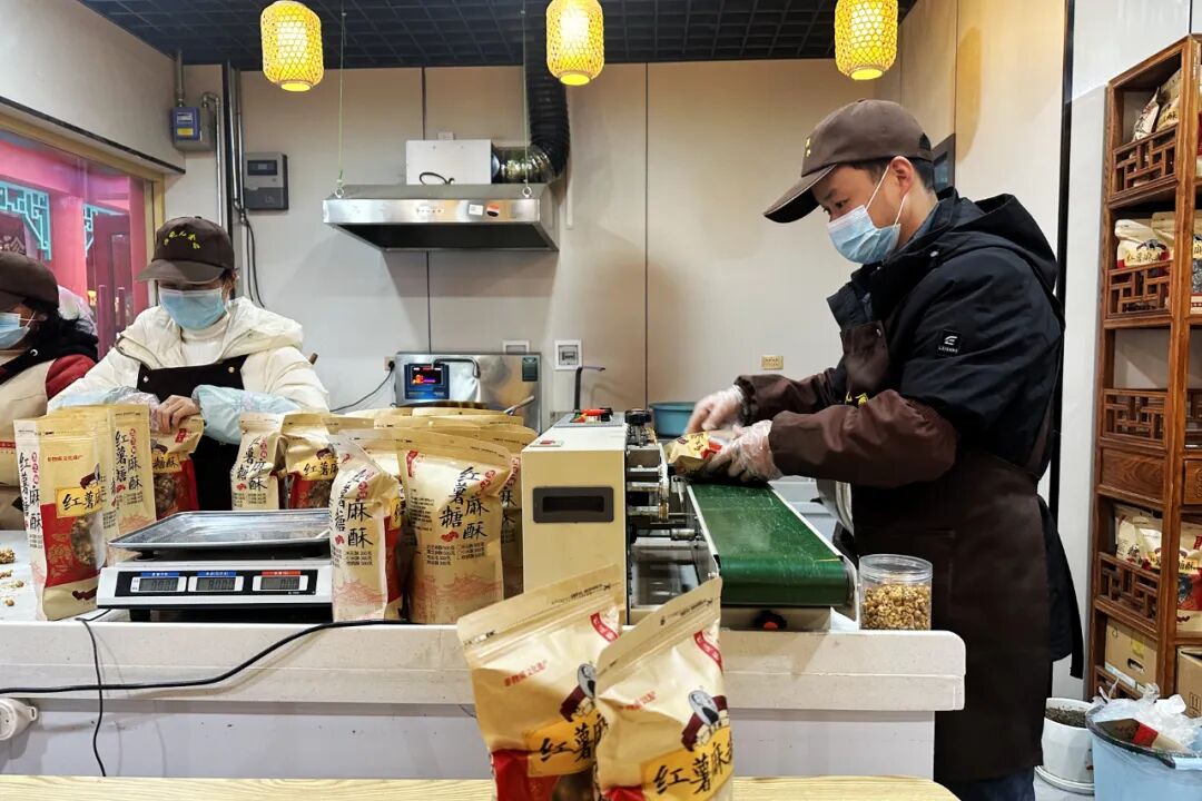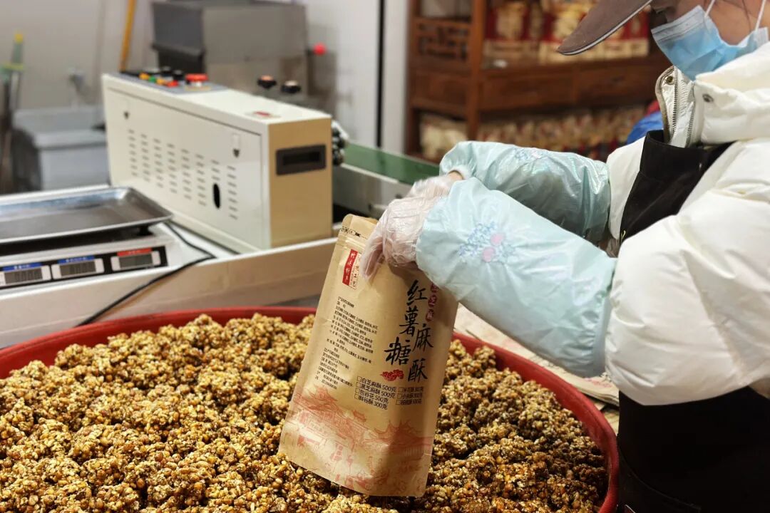 “先是自己喜歡吃,后來發現很多人都喜歡這種傳統手做麻糖,所以更加有信心想把這個事情做好。麻糖在滿足了食客需要的同時,還能給自己帶來收益,何樂不為呢?”當問及馮艷為什么經營麻糖作坊時,她這樣說道。這項甜蜜不僅給馮艷帶來了收入,還讓手工麻糖這種傳統非遺制作工藝得到了延續。