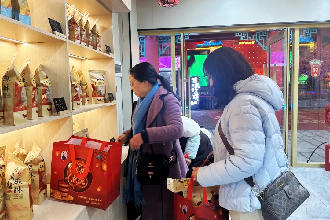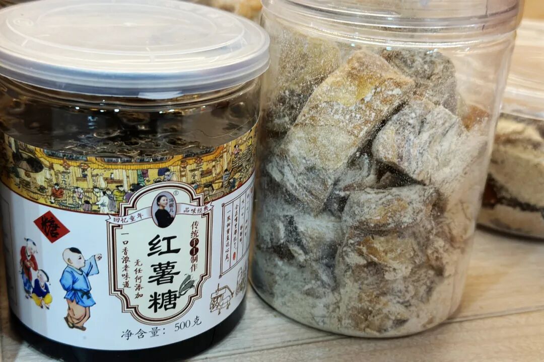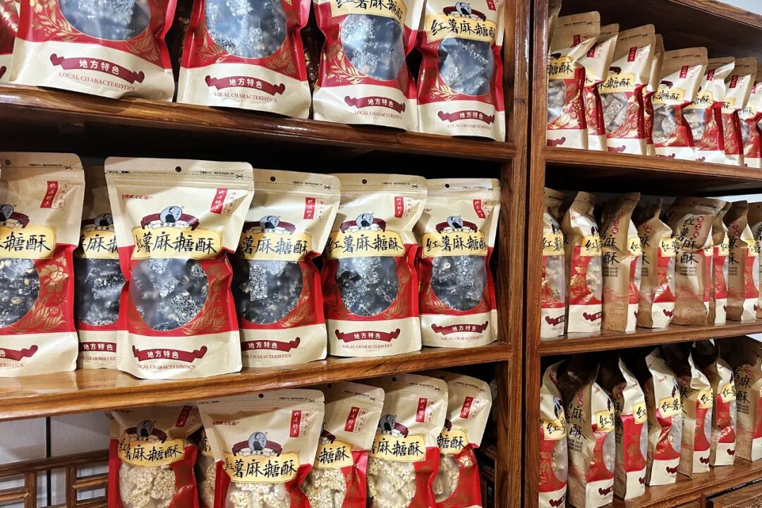 “母親熬制麻糖的手藝是從我奶奶那里學來的,現在又傳給了我。”馮艷笑著向記者介紹,眼神里透著對自家麻糖滿滿的自豪與熱愛。如今,店主馮艷已成為麻糖制作技藝的第三代傳人,每一代都用心守護著這份“甜蜜事業”,代代相傳的手藝承載著歲月的記憶與傳統的韻味。隨著生意越做越大,馮艷在武陵不夜城也盤下了一家店鋪,簡約質樸的裝修,店面雖不大卻“五臟俱全”,除了琳瑯滿目的麻糖制品,還有一個干凈的小作坊,幾名工人正分別忙著熬制紅薯糖漿和炒苞谷米。旁邊一張古樸的茶桌與手工麻糖相得益彰,墻壁上掛著一些老照片,展示著麻糖制作的歷史場景和店主家族傳承的故事,讓人瞬間感受到這份手藝的厚重與深沉。
