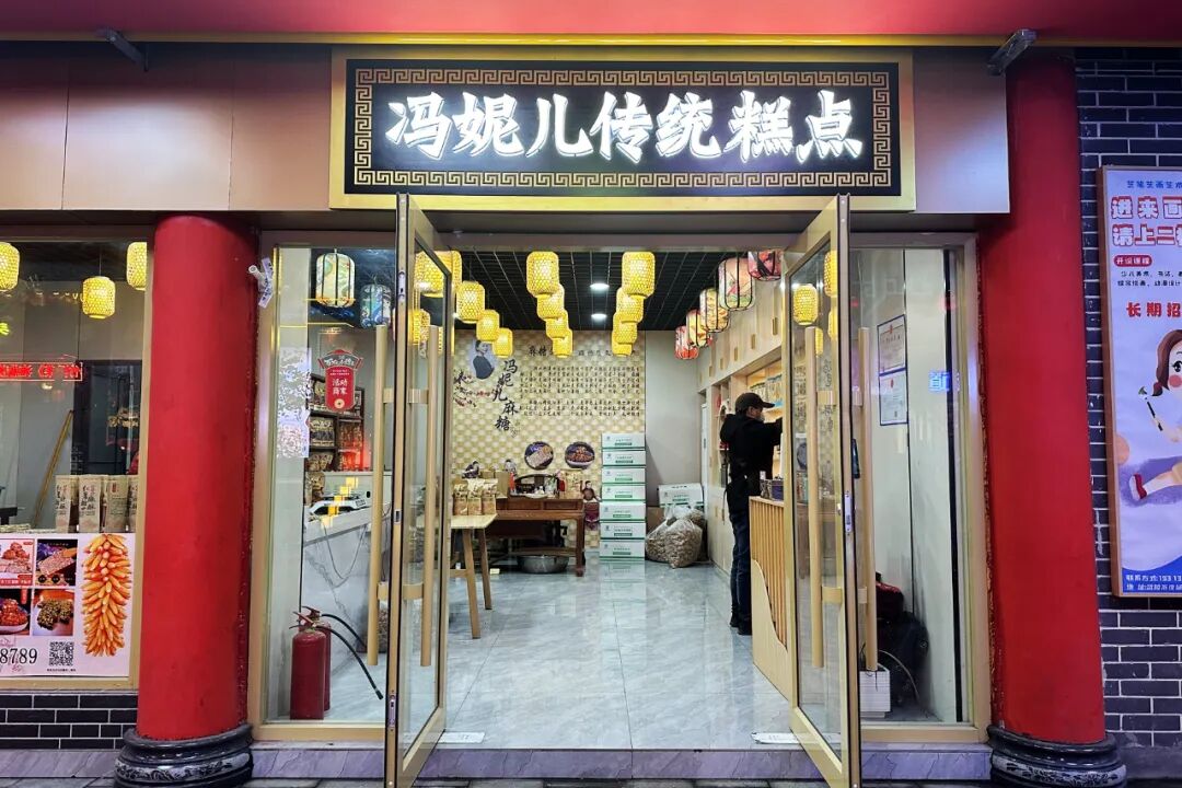 在武陵不夜城內街“馮妮傳統糕點鋪”,古樸的招牌格外引人注目,門外就能聞到熬制麻糖的香味。店內彌漫著濃郁的香甜氣息,是麻糖特有的味道。“熬制紅薯糖的時候要不停地翻動攪拌,直到顏色呈透明的琥珀色,舀起來可以自然成形流動才可以。”這位正在耐心細致地教師傅如何炒制麻糖的女士,正是“馮妮兒傳統糕點”店鋪的老板娘馮艷,她們家最響亮的招牌就是“馮妮麻糖”,這要從2017年開始說起。