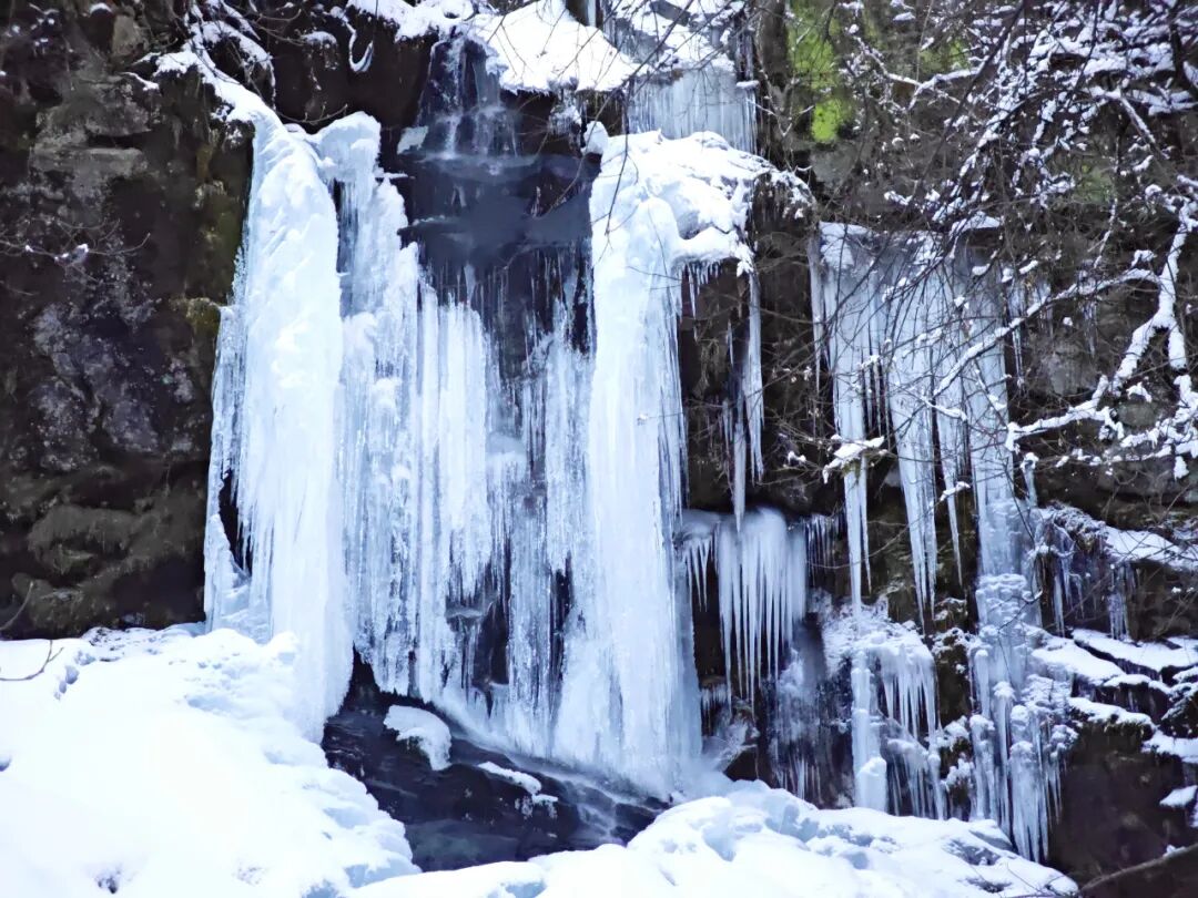 巖壁上的清泉飛瀑此刻已凝固成冰柱、冰花、冰瀑、冰簾等,千姿百態(tài)的冰雕藝術,在陽光的映照下,如夢如幻,宛如一幅幅素雅的水墨畫,勾勒出一個純凈無瑕的冰雪世界,美得令人心醉。