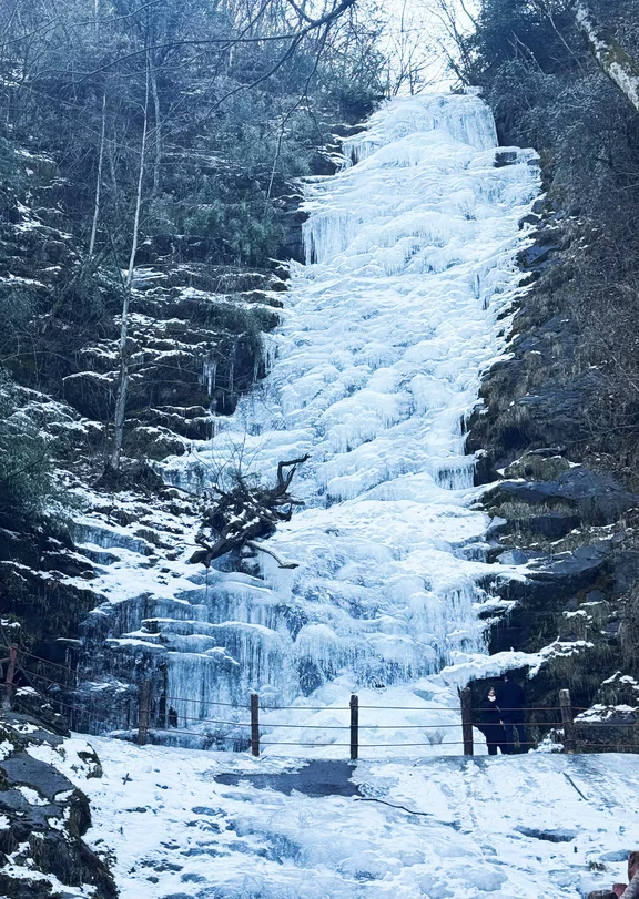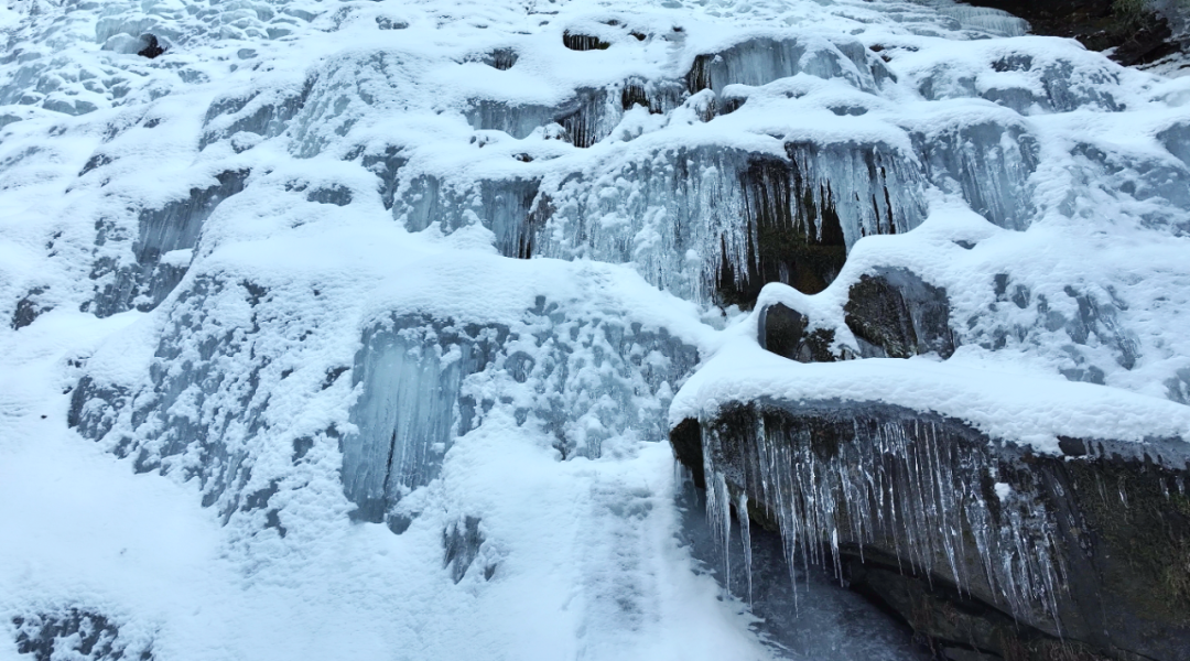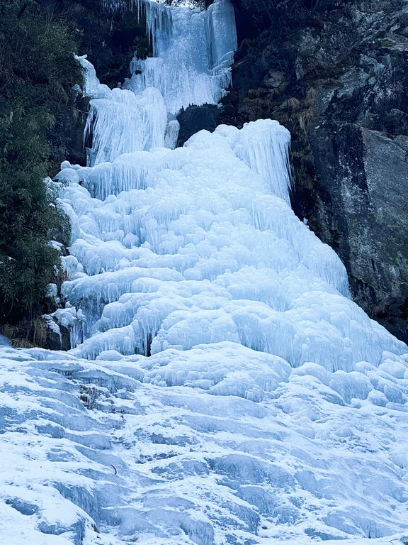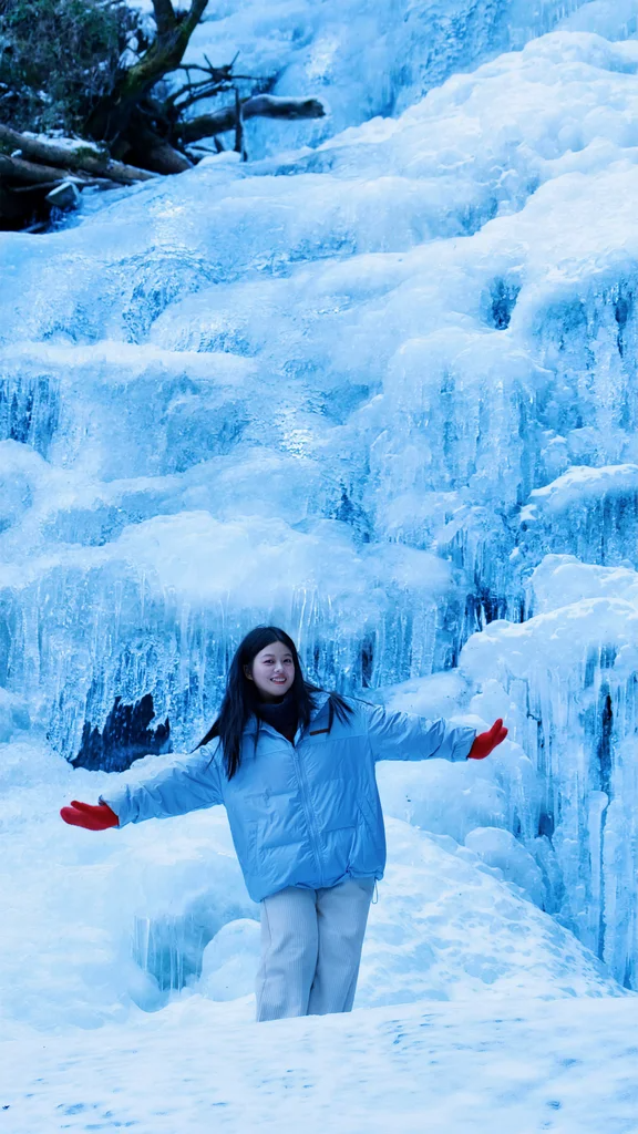 有的冰瀑如簾幕般垂直懸掛,將塵世的喧囂隔絕于外,讓人仿佛置身于一個靜謐的冰雪世界;有的則如波浪般起伏,展現(xiàn)出一種動態(tài)的美感,令人心曠神怡。
