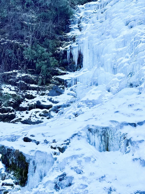 營盤山憑借得天獨厚的山勢落差,孕育了三座形態(tài)各異的冰瀑。每一處都散發(fā)著不同的魅力,唯有親臨現(xiàn)場,方能領略其絕妙與壯麗。