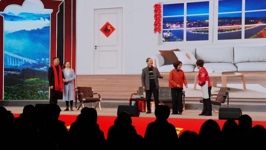 除了來自民間的文藝愛好者,還有竹溪本地有著“頭部效應”的網紅們登臺獻藝。群口相聲《直播竹溪》,“網紅”村支書陽金剛的現場“直播”小品,不僅讓在場觀眾看到“網紅”們幕后的一面,也展現了他們在各自崗位上積極推薦竹溪、宣傳竹溪所作的貢獻。這場兼具“陽春白雪”與“下里巴人”的民間春晚將竹溪的風土人情和藝術相結合,深情表達了全縣人民對新一年美好生活的期望,為新年增添了一股濃濃的家鄉溫暖。
