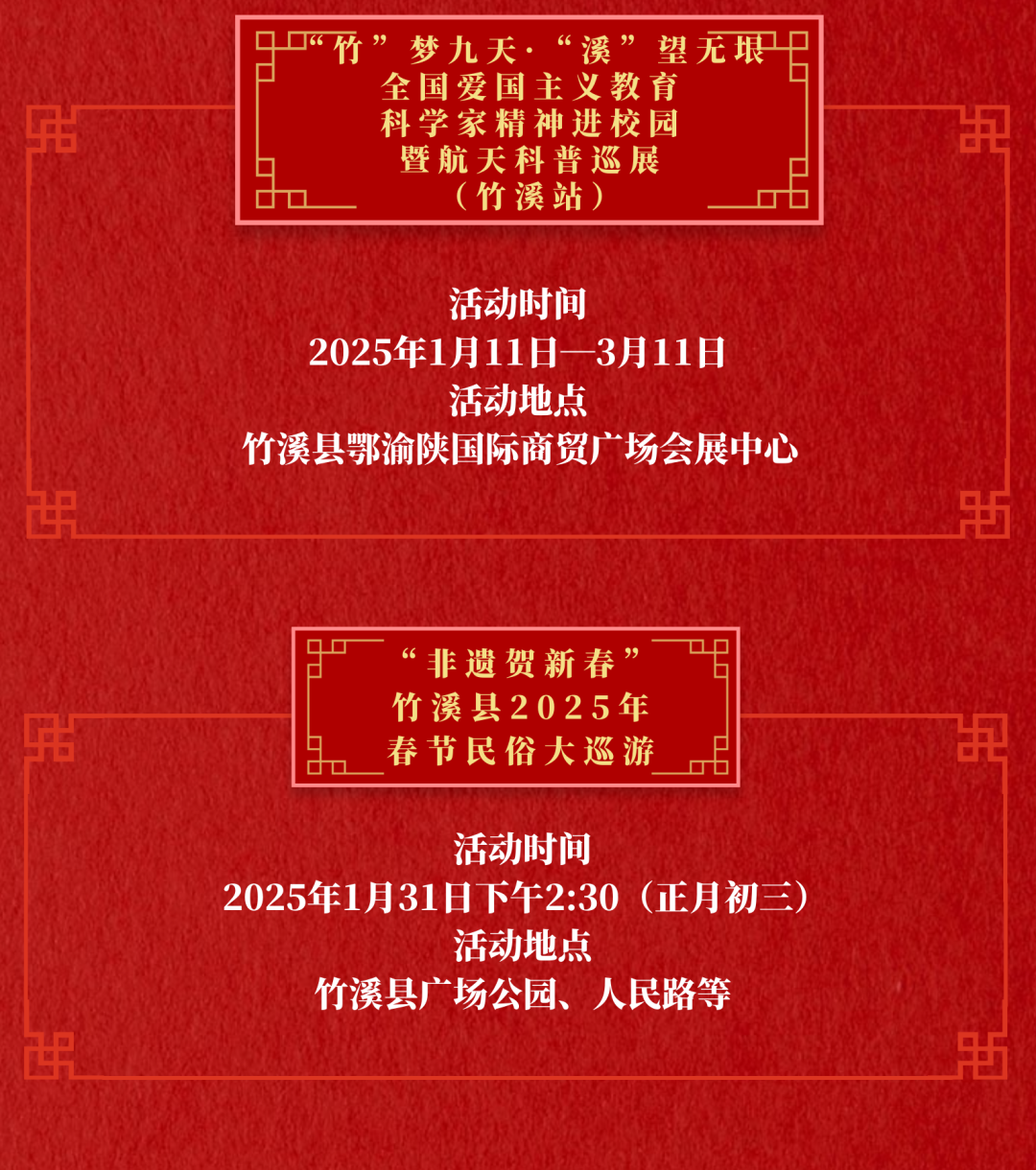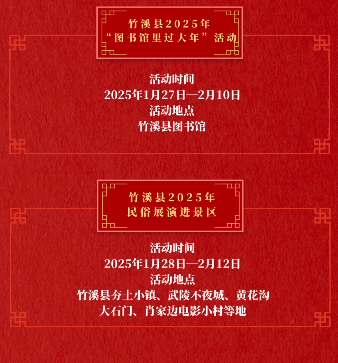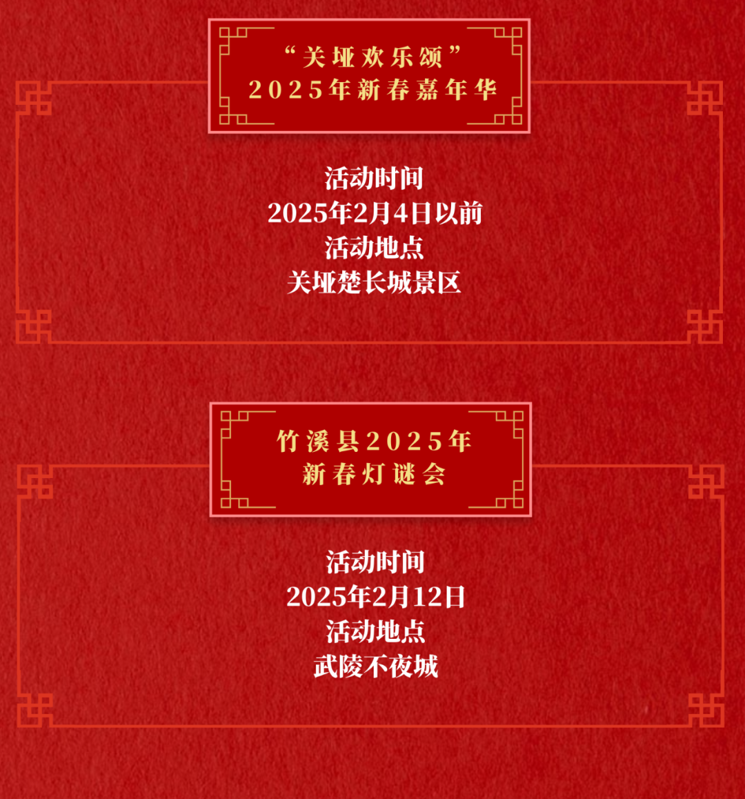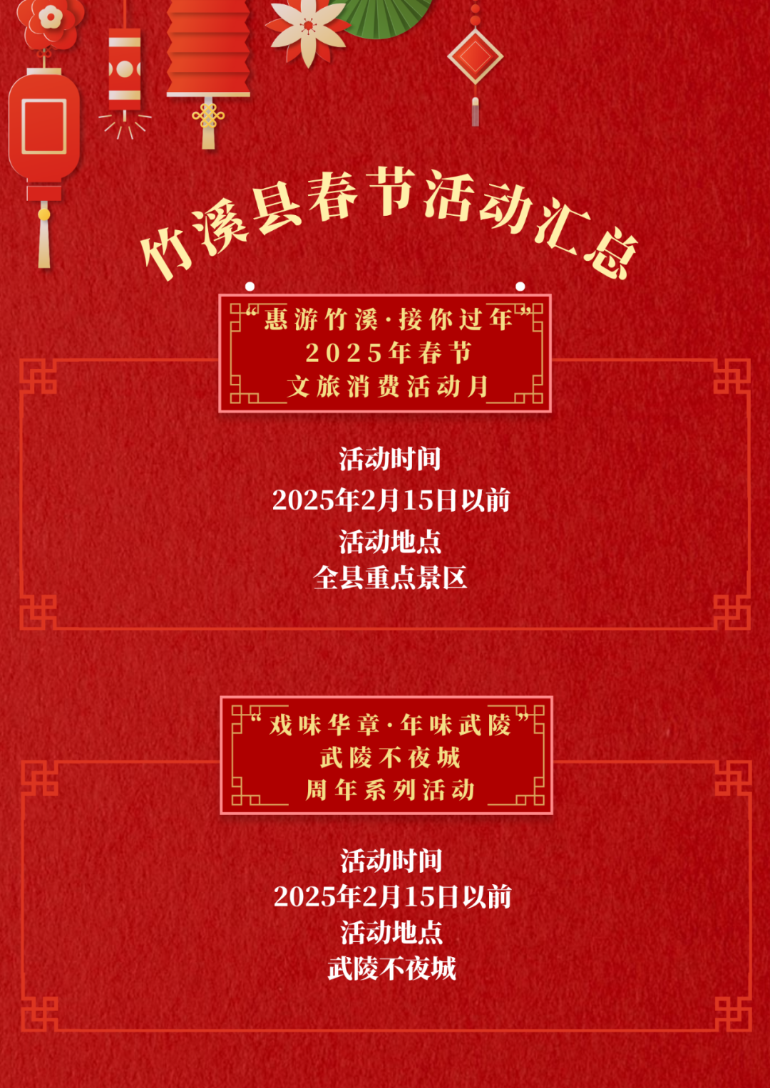 2025年春節(jié)將至,為深入學習宣傳貫徹黨的二十大和二十屆三中全會精神,傳承弘揚優(yōu)秀傳統(tǒng)文化,豐富廣大市民和游客的節(jié)日文化生活,竹溪縣精心籌備了一系列精彩紛呈的文旅活動,全力營造節(jié)日氛圍,拉動旅游消費增長。
