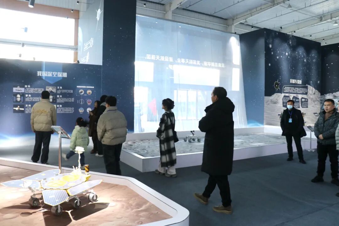 展廳內,百余件火箭、衛星、空間站等珍貴航天器模型整齊陳列,配合豐富的圖文資料、滾動播放的視頻以及工作人員的專業講解,全方位展示了我國航天事業的輝煌成就與未來發展藍圖,讓現場參觀者沉浸式感受宇宙探索的魅力。