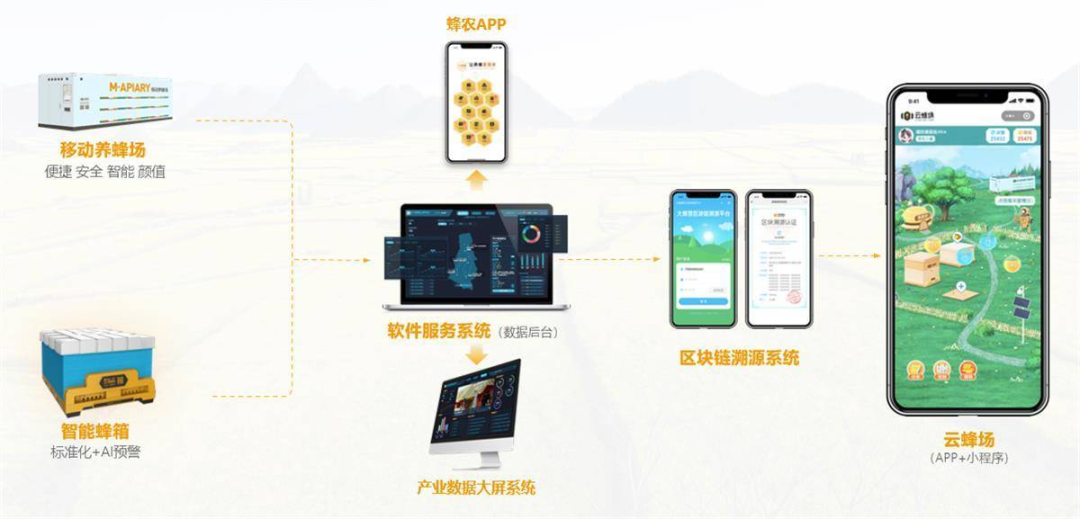 在綠野尚品公司辦公室內(nèi)的信息屏上,蜜源種類、蜂場信息、預(yù)計產(chǎn)量等各項信息清晰明了地顯示在“智慧蜂場”系統(tǒng)后臺。建設(shè)“智慧蜂場”的同時,公司升級原有養(yǎng)蜂設(shè)備,利用“智慧蜂箱”“大蜂慧”APP等高科技手段,打造具有竹溪特色的智慧蜂業(yè)產(chǎn)業(yè)互聯(lián)網(wǎng),搭建電商及線上服務(wù)平臺,促進(jìn)蜂蜜相關(guān)產(chǎn)品流通交易。同時,借助物聯(lián)網(wǎng)、大數(shù)據(jù)等技術(shù)建立蜂蜜相關(guān)產(chǎn)品溯源體系,生產(chǎn)者可進(jìn)行全流程跟蹤管理,消費(fèi)者也可追溯產(chǎn)品生產(chǎn)和流通過程,切實(shí)提升蜂產(chǎn)品質(zhì)量與產(chǎn)品信任度。