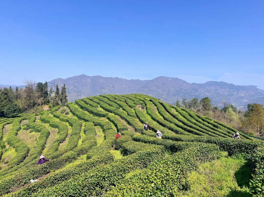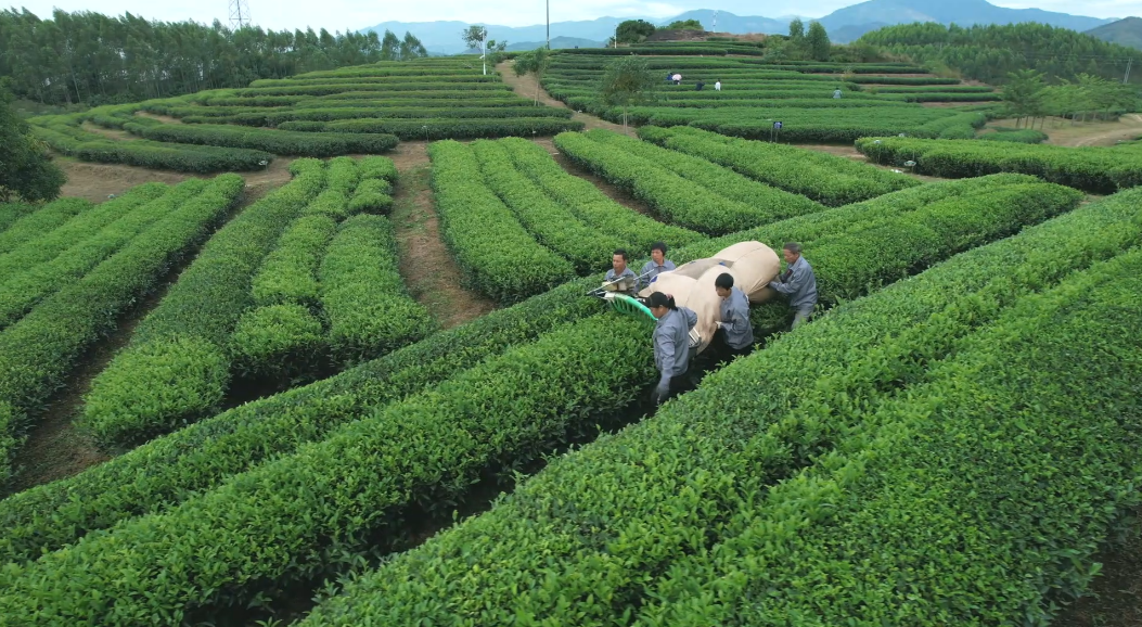 清明時節,茶園化作流動的翡翠海洋,近百名采茶工手法嫻熟,竹簍起伏如浪,片片帶著山嵐氣息的上品鮮葉直供茶企茶廠。“2024年產了4000多斤名優茶!”肖高群回憶。一月有余的春茶采摘黃金期過后,采茶機運轉聲伴隨仲夏蟬鳴掠過茶壟,去年的10萬余斤大茶便是這樣在機器與自然的合奏聲中采摘完成。