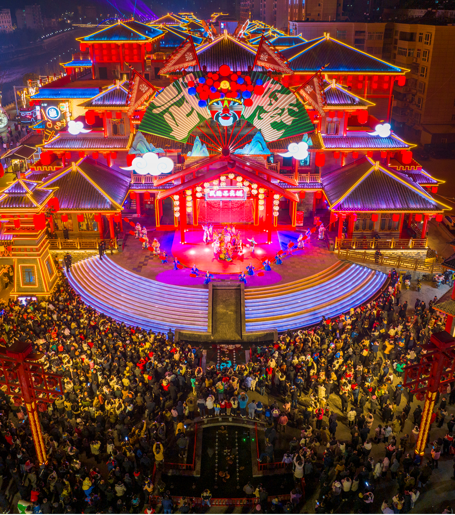 武陵不夜城,位于竹溪縣主城區,是雙國企平臺打造運營的沉浸式戲曲主題夜游街區。街區打造沉浸式文旅戲劇《武陵梨園情》演藝節目,帶給游客震撼的游玩體驗;設立三館一中心,利用數字技術賦能文旅場景建設;打造新生代潮玩城,設置演藝消費聚集區,滿足新場景下高質量演出+旅游的供給需求,拓寬文旅體育消費新空間;促進城鄉文旅提質增效。