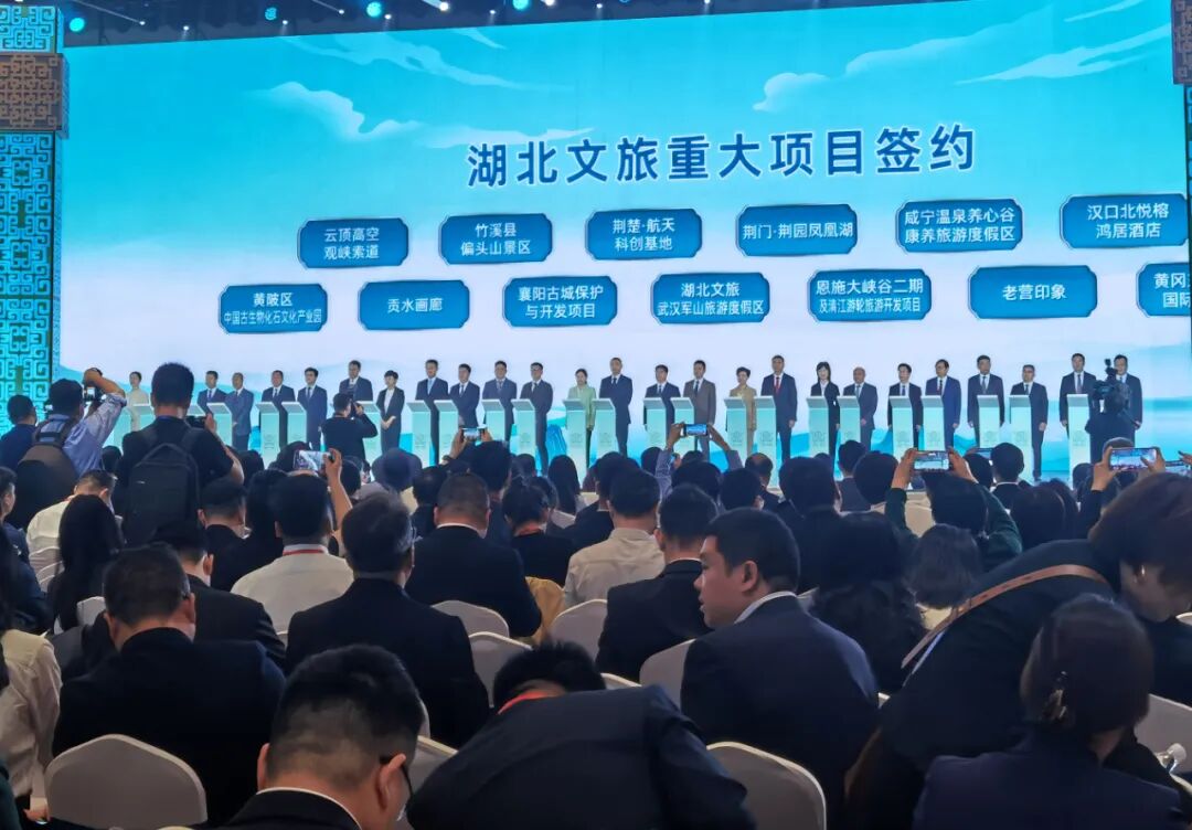 在全省文旅大會的現場展板上,展有沉浸式演藝夜游項目的推介,竹溪武陵不夜城位列第二。,時長00:10△活動現場視頻