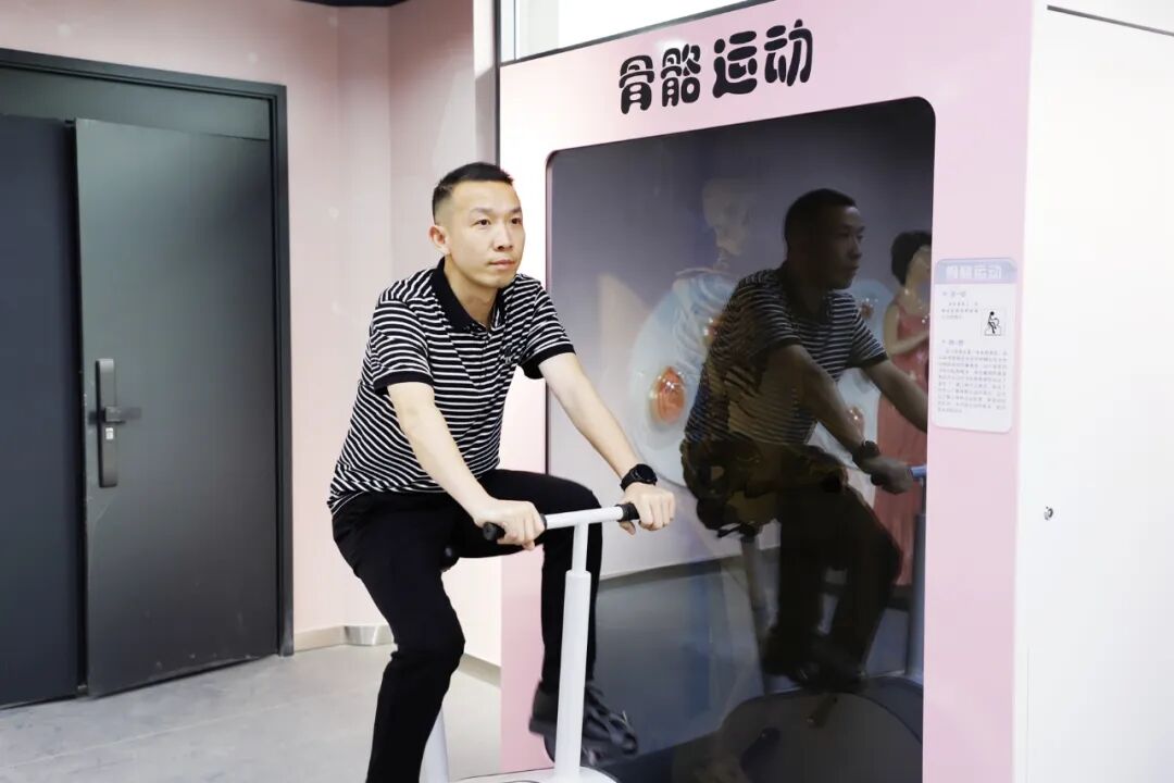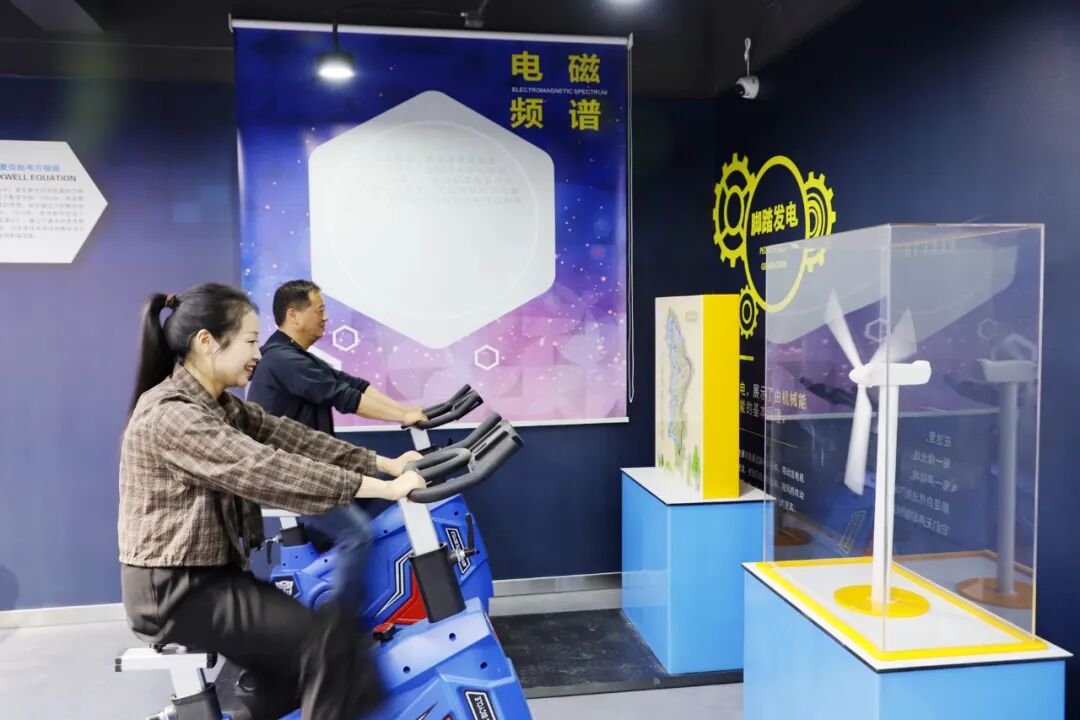 自行車發電也是備受公眾歡迎的展項之一,該展項以竹溪縣各地自然風光為模型,按照一定比例打造實景地圖,體驗者只需登上踏板,就能“云參觀”縣內知名風景區的美景。