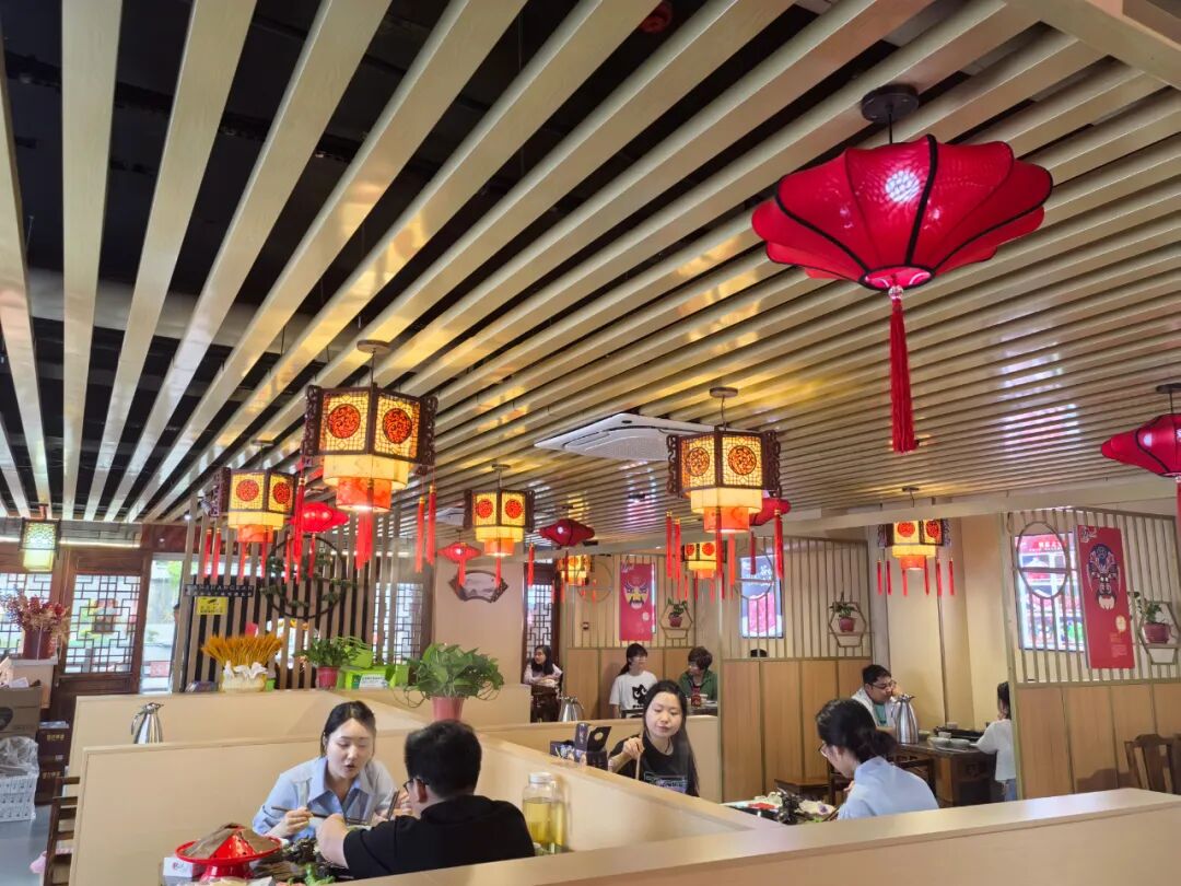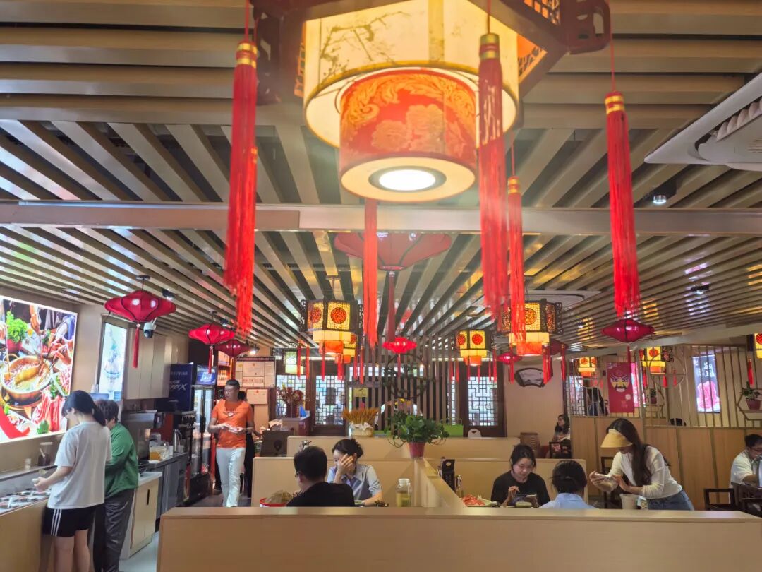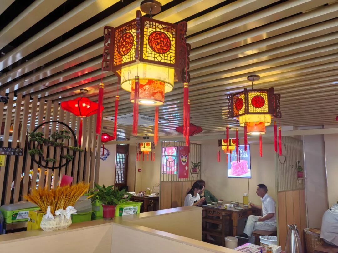 月宮碼頭老火鍋巨大的門頭招牌格外引人注目,店內的裝修采用現代國風新潮,進門可見屏風上的假山石景、小橋流水。走進店內,墻壁上張貼著各種美食圖片,麻辣鮮香的味道撲鼻而來,引得人瘋狂分泌口水。