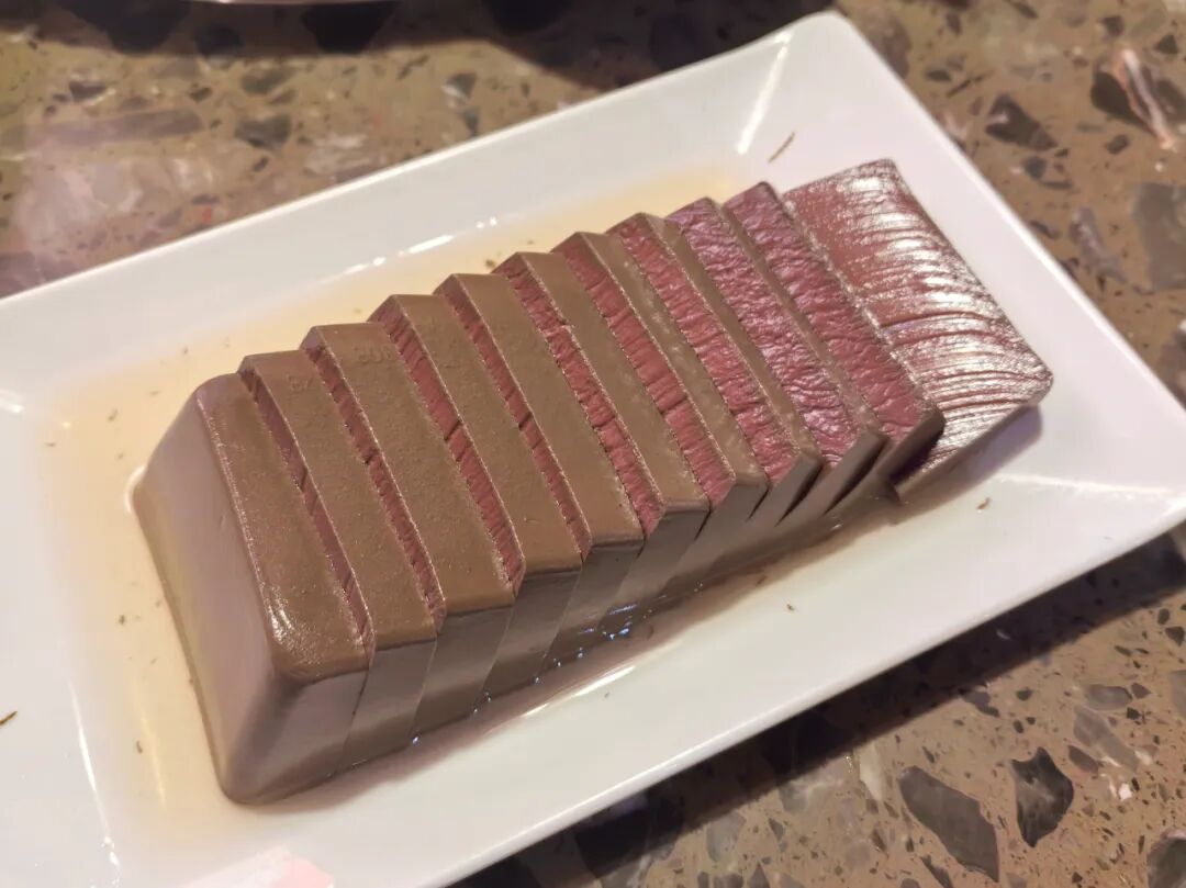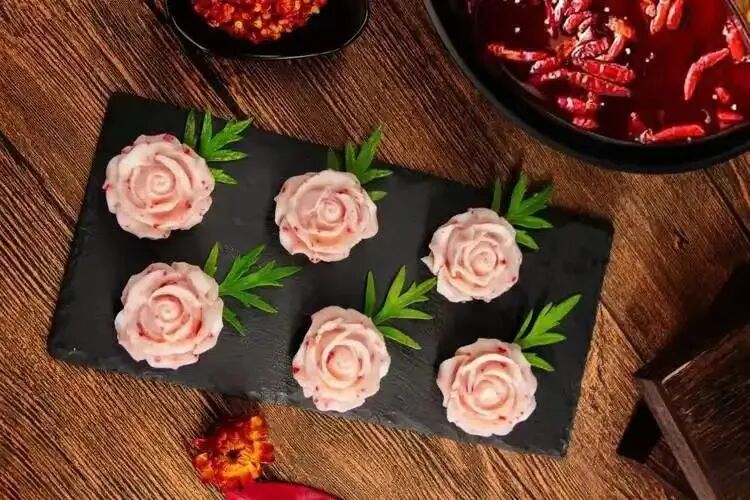 等待火鍋沸騰的時間,先去調一碗蘸料,蒜泥、香菜、蔥花、香油攪拌一下,滿口留香。空運過來的冷鍋鴨血在開鍋前先放進去,鮮嫩爽口,入口即化。新鮮毛肚薄如紙,是每桌必點菜品,“七上八下”后脆嫩鮮爽,應齒而斷,卷上剁椒,火辣口感直接上頭。原切雪花牛肉色澤紅潤,放入鍋中沸騰十秒,入口嫩滑。這里的蝦滑也不容錯過,蝦肉鮮美至極,低卡健康,讓食客在享受美味的同時,亦能無負擔地大快朵頤。更令人驚喜的是,老板慷慨相贈的冰淇淋,清甜解膩,讓人忍不住一口接一口,沉醉在這份意外的甜蜜之中。