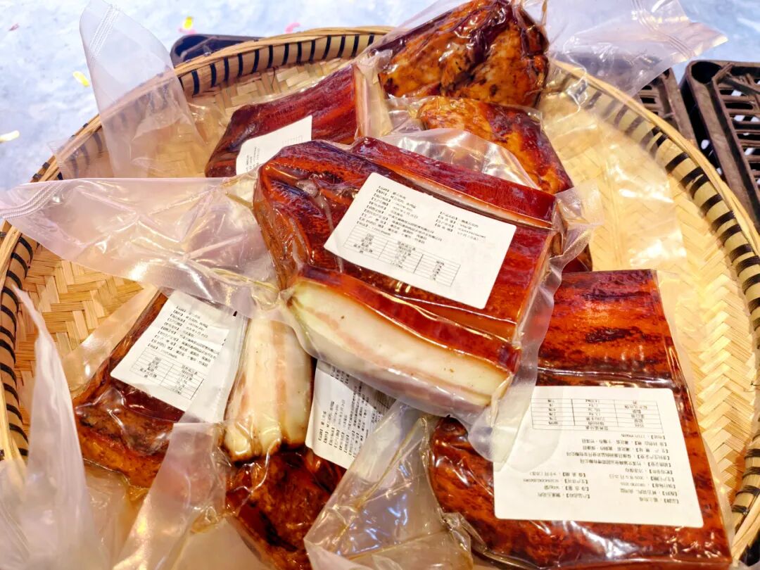 這家店里的臘肉自開業之前,就進行了長達一年多的選品之旅,店長親自深入竹溪各鄉鎮,尋找食材和手藝都近乎完美的農戶家中進行批量采購。其中一家貨源的臘肉手藝傳承了半個世紀,老爺爺的眼睛因為常年在熏房作業已經看不清字了,但依然熱愛并堅持,這份匠心是臘肉好吃的靈魂。他堅持古法熏臘肉,精選竹溪本地土豬,抹糧食酒、放花椒面等香料后用土木灰熏制數道。為了保證臘肉可以耐住現在的高溫,臘肉的每一個縫隙都經過特殊處理才不會生蟲。