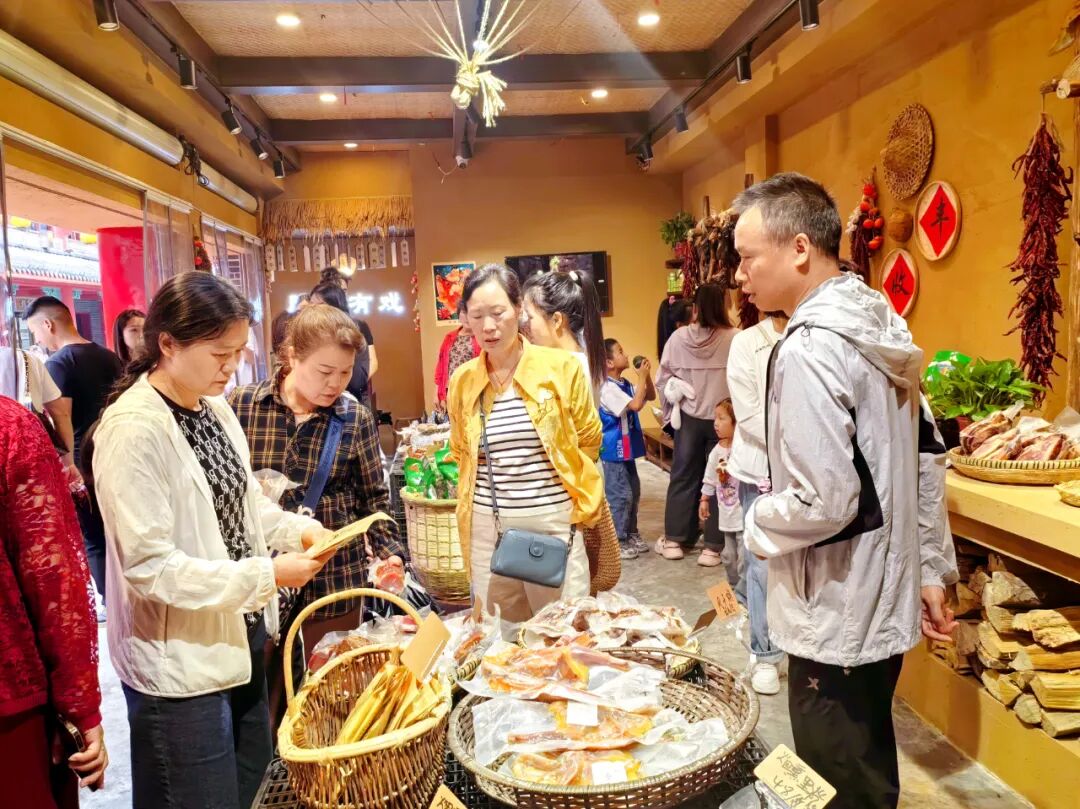 當不夜城的燈火點燃夏夜,戲曲聲縈繞在耳畔,常態化演出吸引來了一波人流量高峰,也是這家臘肉館客流最多的時候。不少游客都會駐足在這家戲曲與鄉愁融合的土特產店,挑選一份來自深山好物,一份家的味道,讓家鄉時刻與自己同在。