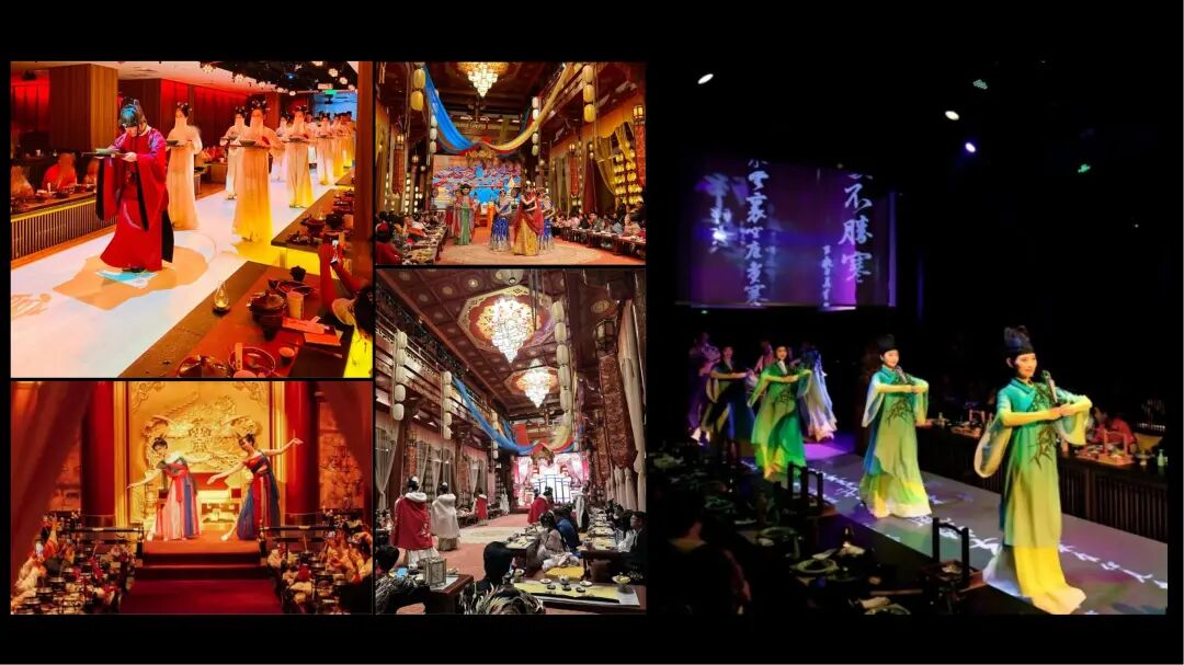 ·餐秀劇場(chǎng):編鐘聲里復(fù)刻楚國(guó)祭祀宴,青銅器盛裝楚地時(shí)鮮,巫舞搖曳燭影,舞臺(tái)即是餐桌,通過(guò)現(xiàn)代劇場(chǎng)技術(shù)和創(chuàng)意手法,將其轉(zhuǎn)化為一場(chǎng)視覺(jué)、聽(tīng)覺(jué)、味覺(jué)、嗅覺(jué)、觸覺(jué)全方位沉浸的史詩(shī)美食盛宴;