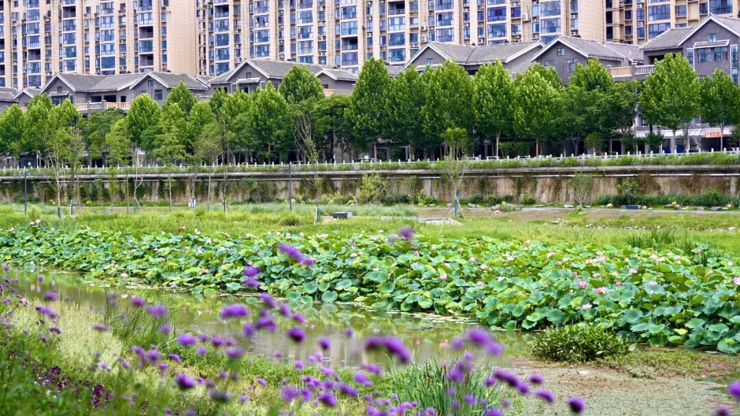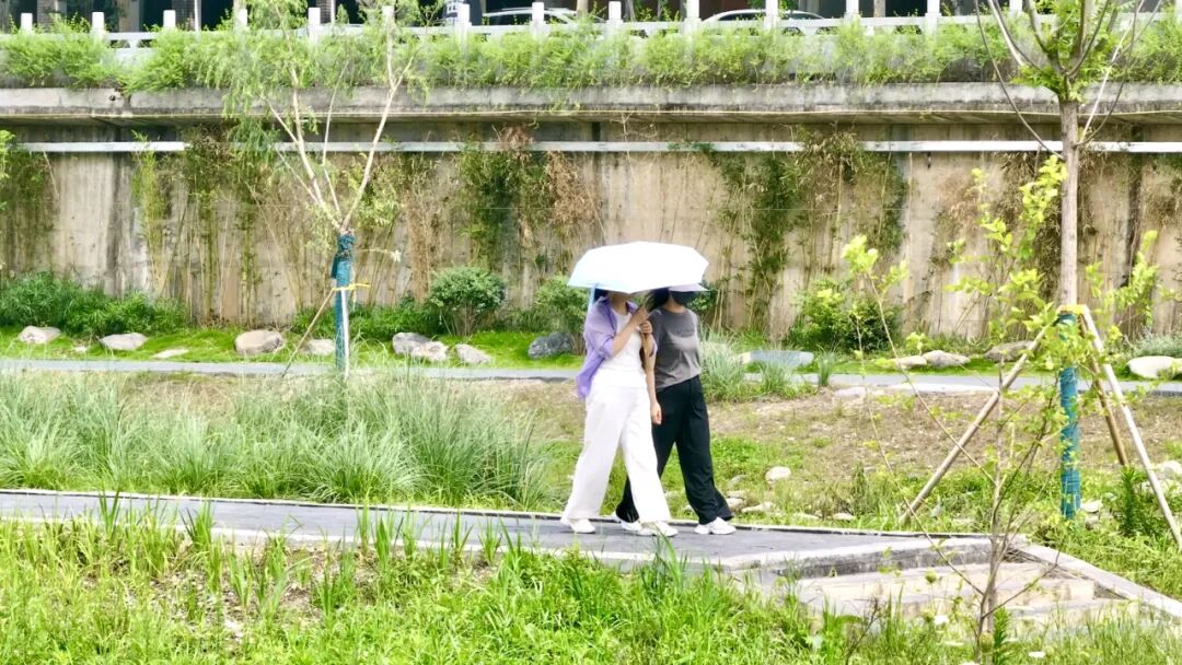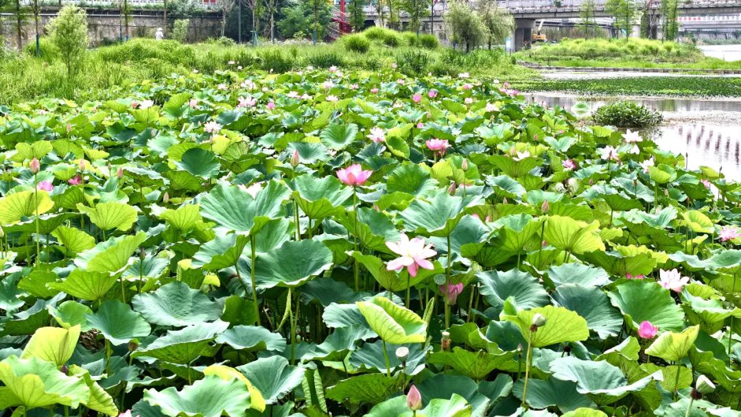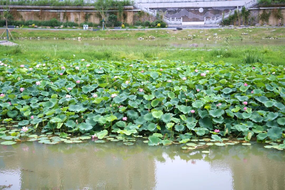 小島兩旁是竹溪河的游步道。彩色瀝青鋪就,蜿蜒如蛇常有市民三三兩兩踱過老者拄杖緩行、小兒奔跑嬉笑、青年男女則并肩私語將影子投射進荷塘。游步道邊的柳枝低垂時而輕拂水面,攪碎一池花影。