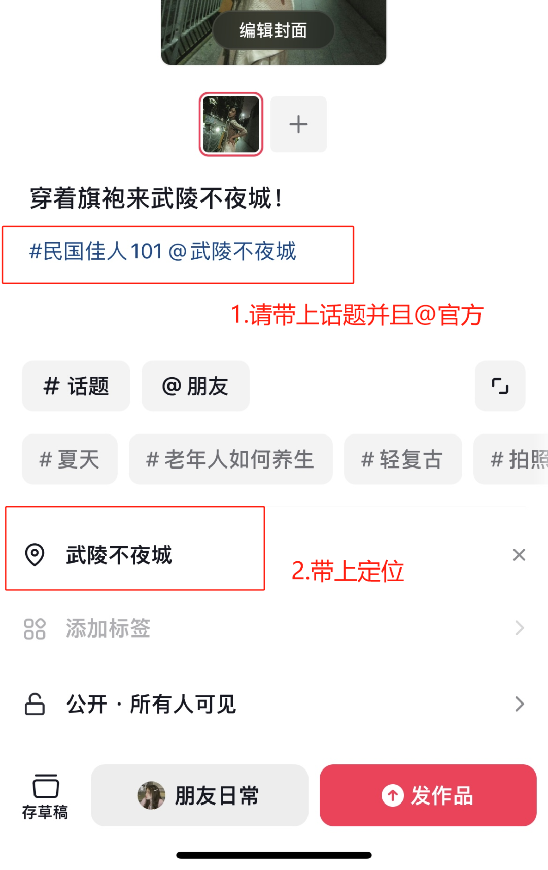 ▼發(fā)布作品步驟如下: