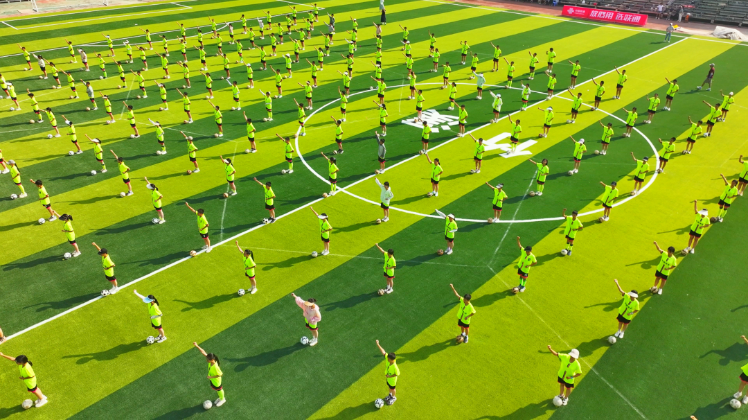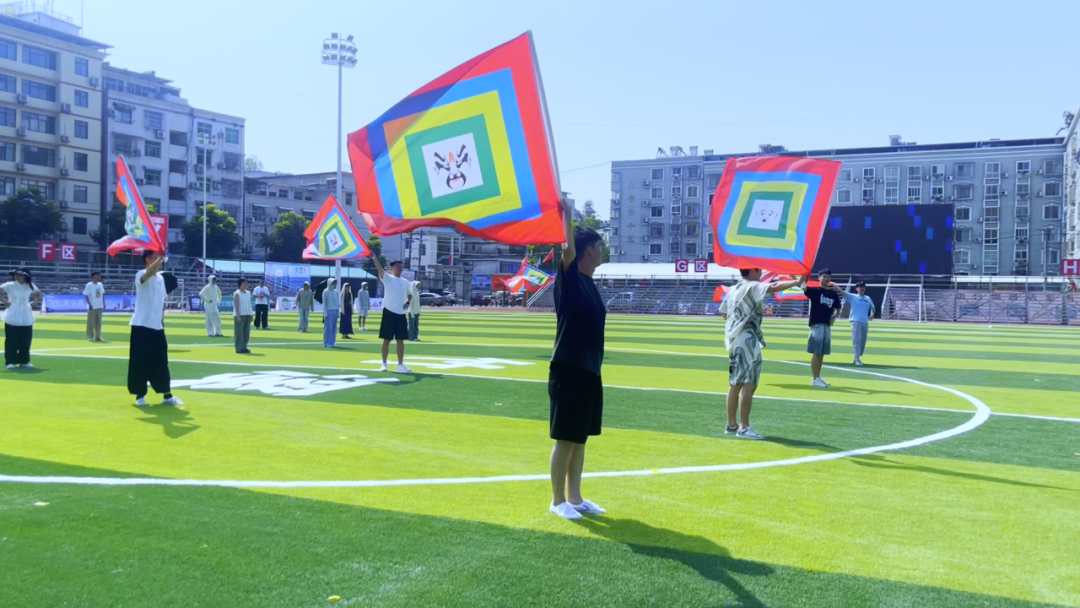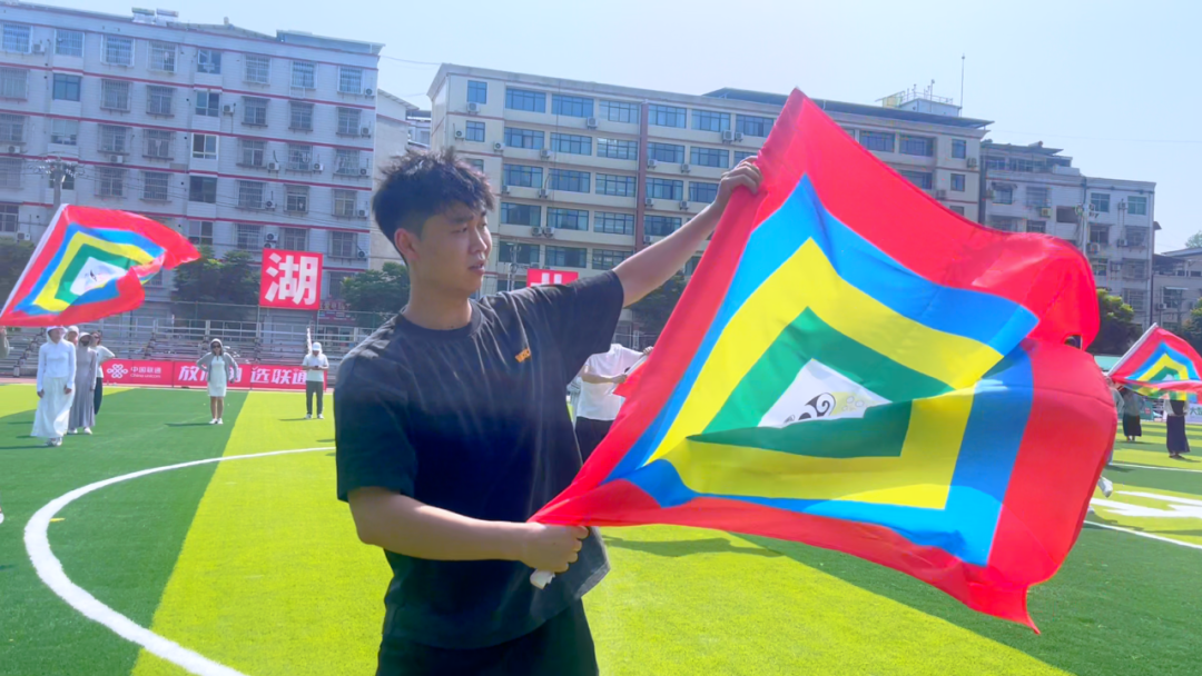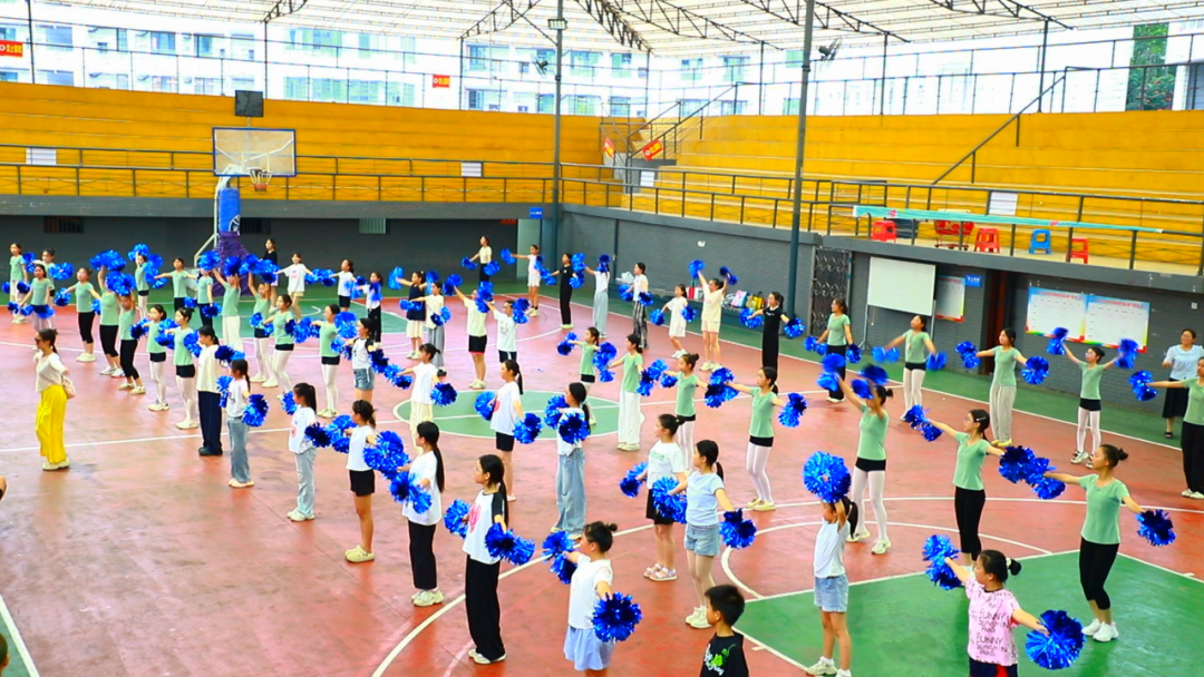 在縣實驗中學的排練場地,團體操《生命之杯》的排練同樣熱火朝天。300名學生參與其中,伴隨著激昂的音樂,他們以整齊劃一的動作展現出青春的活力與激情。整個團體操的編排緊密圍繞“村超”的氛圍,通過多變的陣型和富有感染力的動作,將青春的朝氣與足球運動的活力相結合,充分體現出青少年們積極向上的精神風貌。