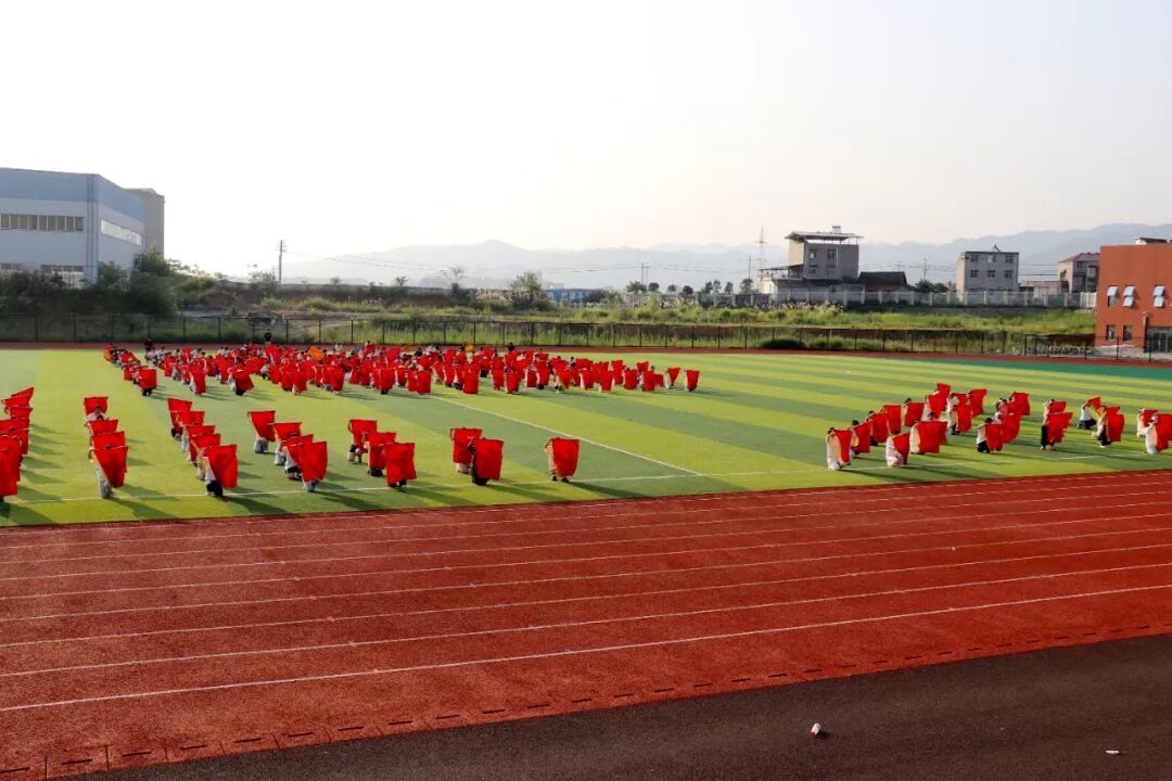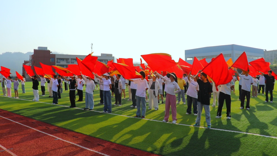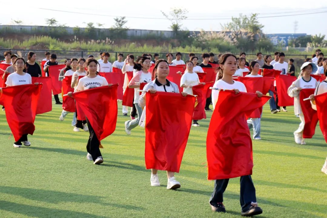 在縣職校的團體操《旗舞飛揚》排練現場,也是一片忙碌景象。學生們手持鮮艷的旗幟,在老師的指導下,不斷地進行走位和動作排練。舞動的旗幟猶如一片紅色的海洋,時而整齊劃一,時而變幻出各種造型,極具視覺沖擊力。