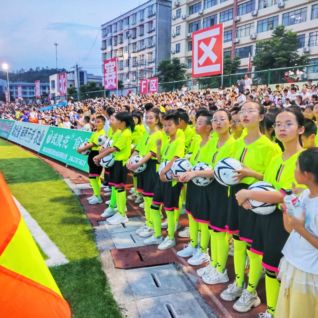 比賽分上、下兩個半場,每場45分鐘。在中場休息期間,竹溪縣職業技術學校表演了團體操《旗舞飛揚》,非凡藝術培訓學校和美杰爾藝術培訓學校的孩子們帶來了啦啦操《超越夢想》,場面壯觀,熱情澎湃。