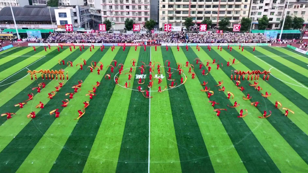 開幕式上,竹溪二中學子們表演的舞龍舞獅團體操《龍騰盛世》,展現了竹溪青少年昂揚向上的精神風貌和朝氣蓬勃的青春氣息。山二黃樂舞《竹溪歡迎您》,讓觀眾現場聆聽非遺之聲,感受詩意竹溪。竹溪縣實驗中學學生們表演的足球操《生命之杯》,百人齊舞,列隊整齊,盡顯足球運動的魅力與風采,輕靈活潑的身影構成了一幅跳躍、變幻的風景,吸引了在場所有人的眼球。