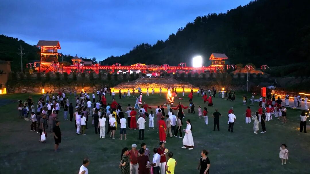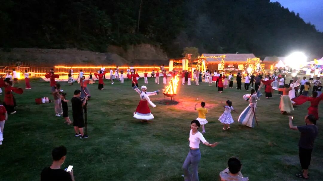 當(dāng)景區(qū)負(fù)責(zé)人一聲嘹亮的“點(diǎn)火”號(hào)令劃破夜空,熊熊篝火應(yīng)聲騰空而起,橘紅色的火焰在夜風(fēng)中歡快跳躍,瞬間點(diǎn)燃全場游客的熱情,歡呼聲、尖叫聲響徹關(guān)埡的夜空。這場融合鄂陜民俗特色的篝火晚會(huì),正以最熱烈的姿態(tài)吸引千余名游客齊聚,共度夏日激情之夜。身著傳統(tǒng)服飾的演員們登上舞臺(tái),高亢婉轉(zhuǎn)的唱腔與靈動(dòng)輕快的舞步交織,將秦巴民俗風(fēng)情演繹得淋漓盡致,臺(tái)下陣陣掌聲與喝彩聲不絕于耳。