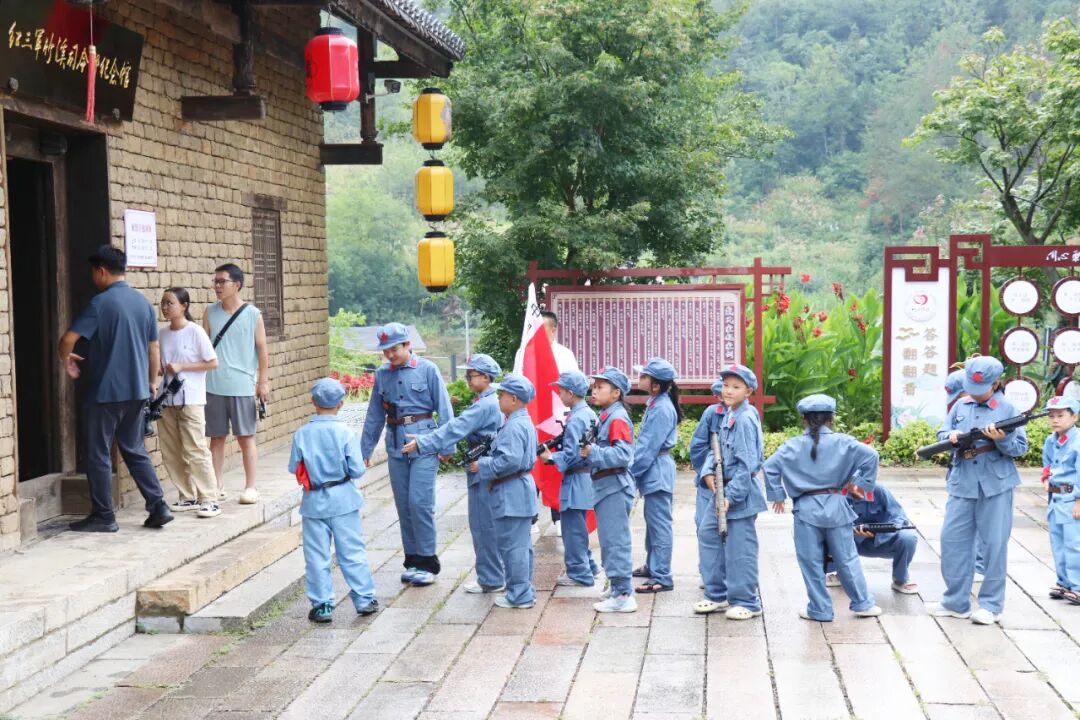 在肖家邊電影小村紅三軍竹溪司令部舊址,仿佛將大家帶回那段激情燃燒的革命歲月。在講解員深情的解說中孩子們睜大眼睛、仔細聆聽,稚嫩的臉龐映著紅色故事的光芒在一個個動人的革命片段里觸摸歷史的溫度接受紅色革命洗禮。