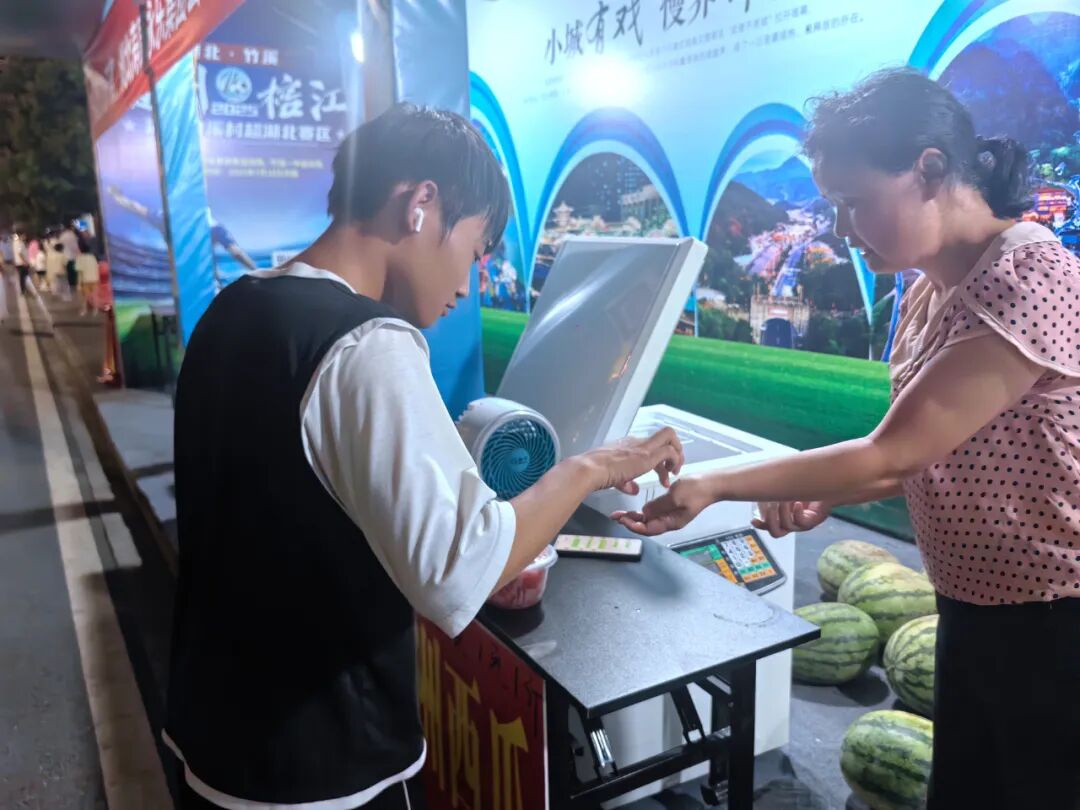 隨著“村超”的舉辦,體育的激情與夜經(jīng)濟的活力在夜色中相擁。百米長的街道兩側(cè),三十多個臨時攤位已形成整齊的“市集”,它讓小城的夜晚從寂靜走向沸騰,讓寂靜的街巷升騰起煙火氣,更讓“賽事經(jīng)濟”成為拉動文旅消費的新支點,成為竹溪“村超”最撫凡人心的注腳。