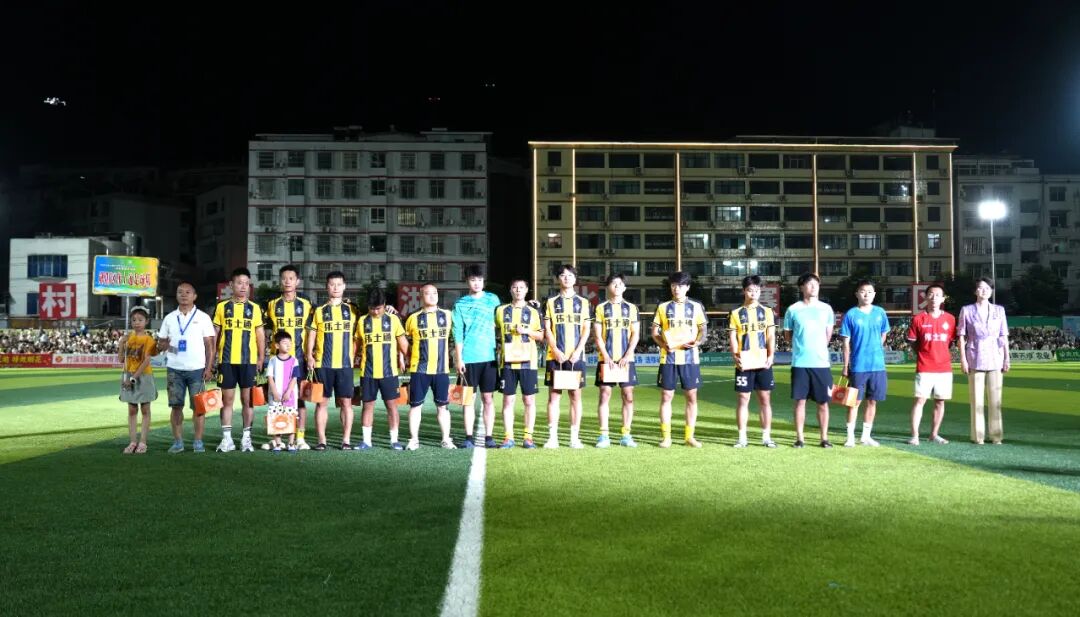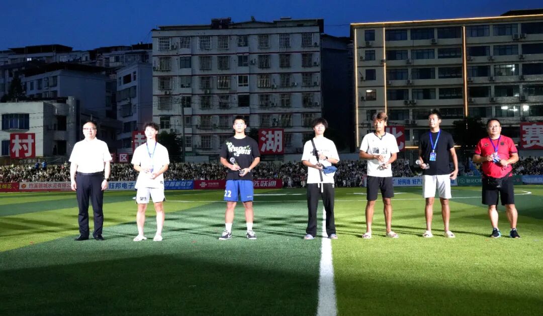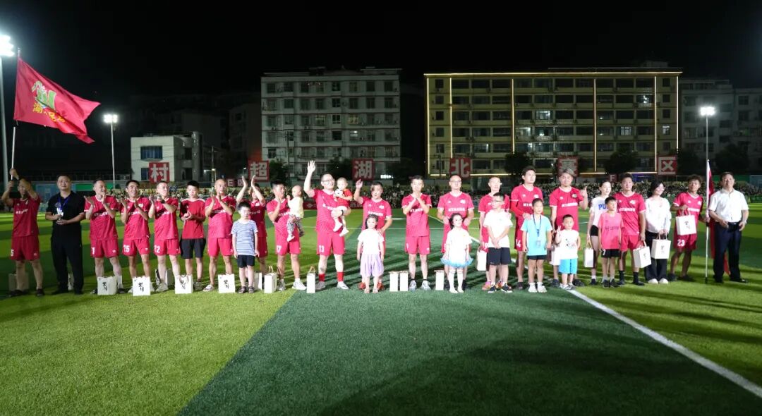 縣領導李芳、喻輝、曾飛、郭稼、楊巧燕,“村超”全國賽湖北賽區邀請賽裁判長吳軍,沃思飲品(湖北)有限公司總經理易章霖,各參賽代表隊,新聞媒體朋友以及來溪游客等參加閉幕式。