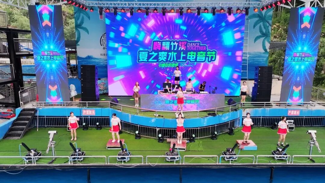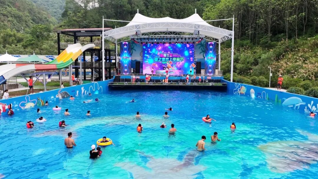 為進一步豐富游客體驗,7月以來水上樂園里增設(shè)的夜場與水上電音節(jié)等活動更讓這里熱度飆升。夜幕降臨,燈光璀璨,音樂響起。動感音樂在水面上回蕩游客們隨節(jié)奏在水中舞動與舞臺嘉賓熱情互動現(xiàn)場氣氛熱烈非凡,夜場與電音節(jié)的開啟讓樂園日接待量達2000余人次成為竹溪夏日旅游最亮眼的名片。
