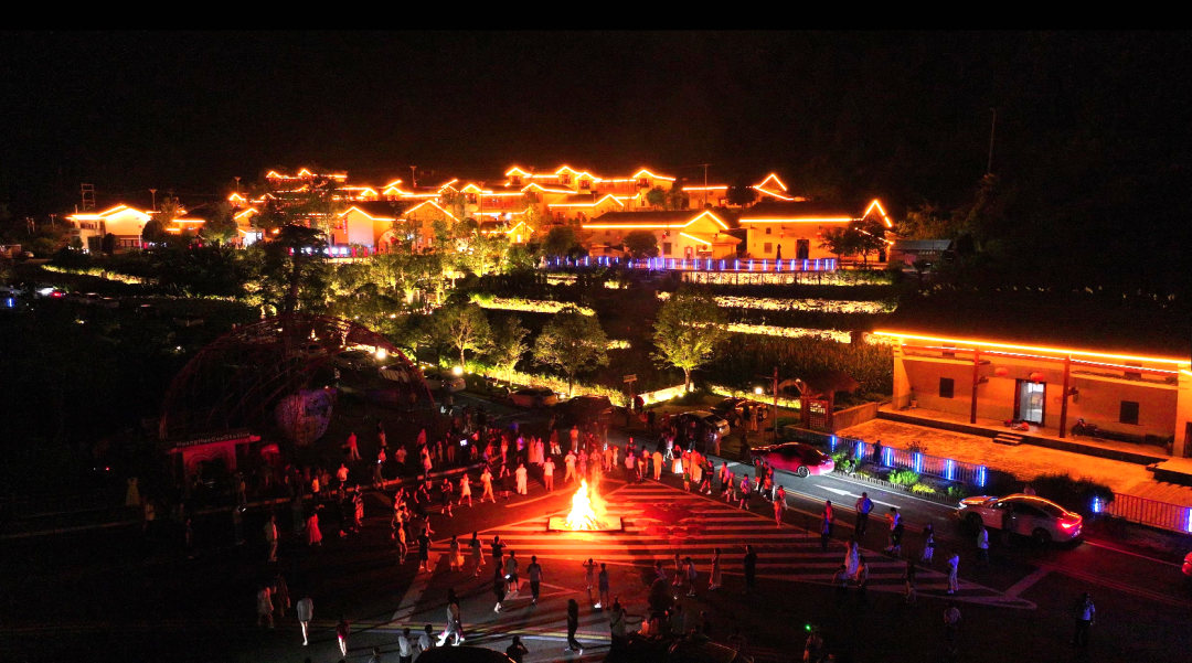 關(guān)埡楚長(zhǎng)城景區(qū)的夜晚充滿了歷史的韻味與現(xiàn)代的活力,古老城墻在燈光映照下盡顯巍峨。城墻下篝火舞會(huì)熱烈開場(chǎng),人們隨著歡快的節(jié)奏盡情舞動(dòng)。