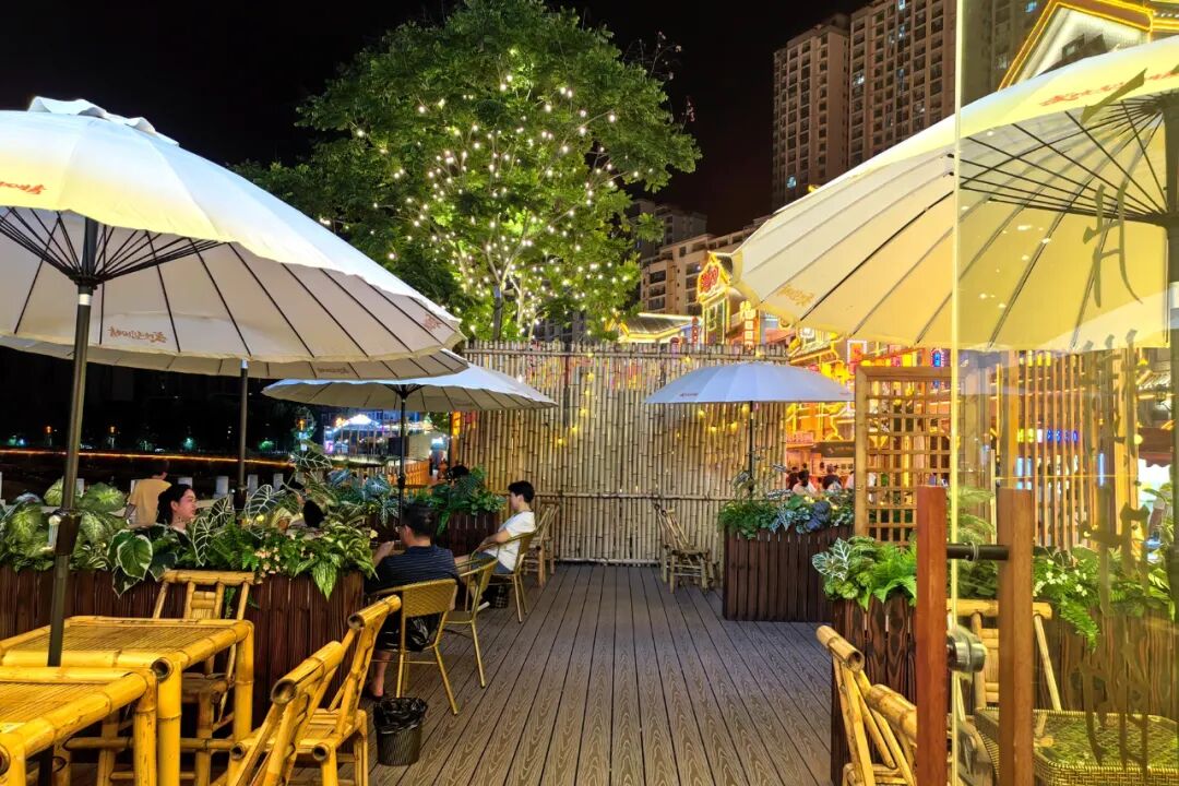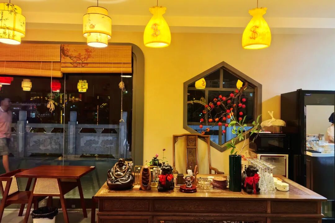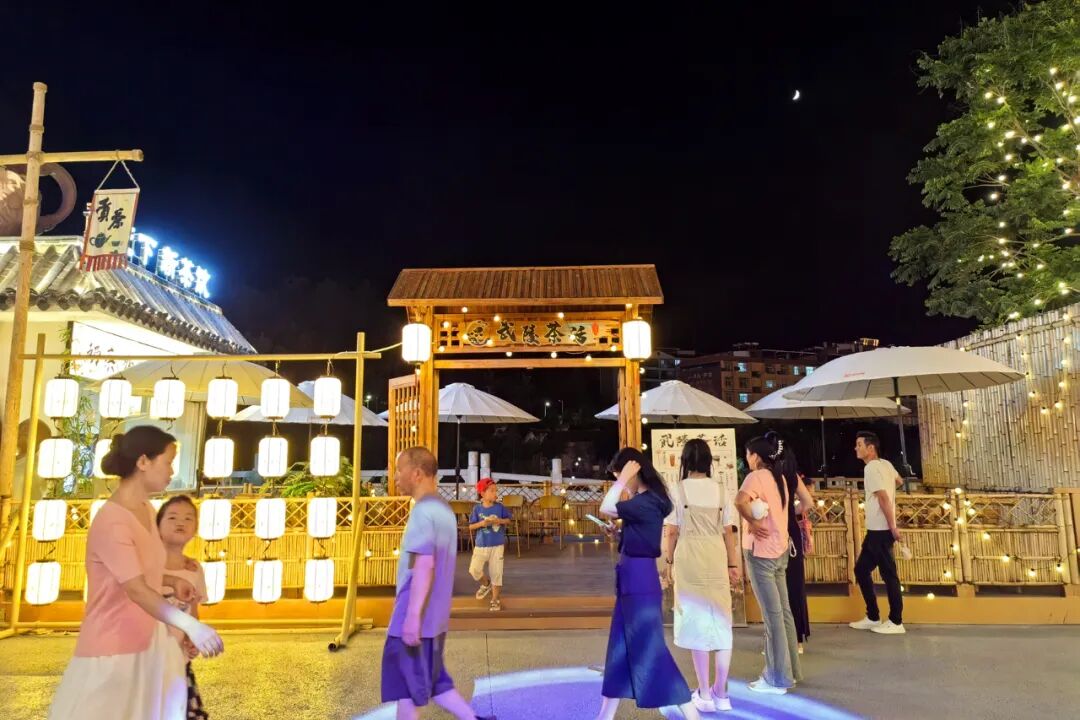 最妙的是茶館的視野。臨街而坐,品嘗著茶,抬眼能望武陵不夜城DE區(qū)的熱鬧喧囂,側(cè)耳可聽西關(guān)河畔的溪水潺潺。視覺里是燈火璀璨的人間煙火,味覺中是梅子埡茶的清冽回甘,雙重感官的交織暈染,讓每一位來客都不自覺沉下心來。本地市民常來尋一份閑逸,遠(yuǎn)方游客愛在此定格片刻,茶香里的時(shí)光,總讓人愿多留一會(huì)兒。