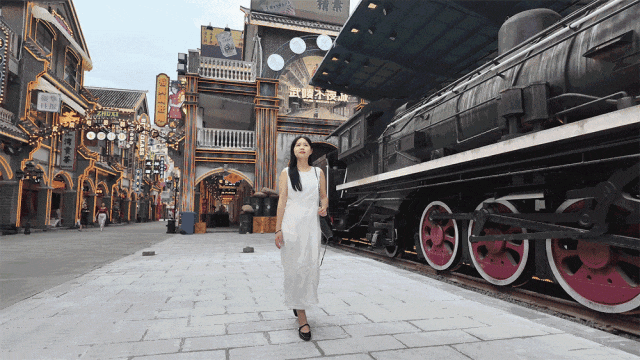 只聽導(dǎo)演一聲“開機(jī)”!蒸汽火車鳴笛騰汽,七彩煙霧啟動,街區(qū)瞬間化身為巨型電影片場!