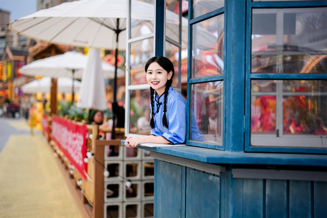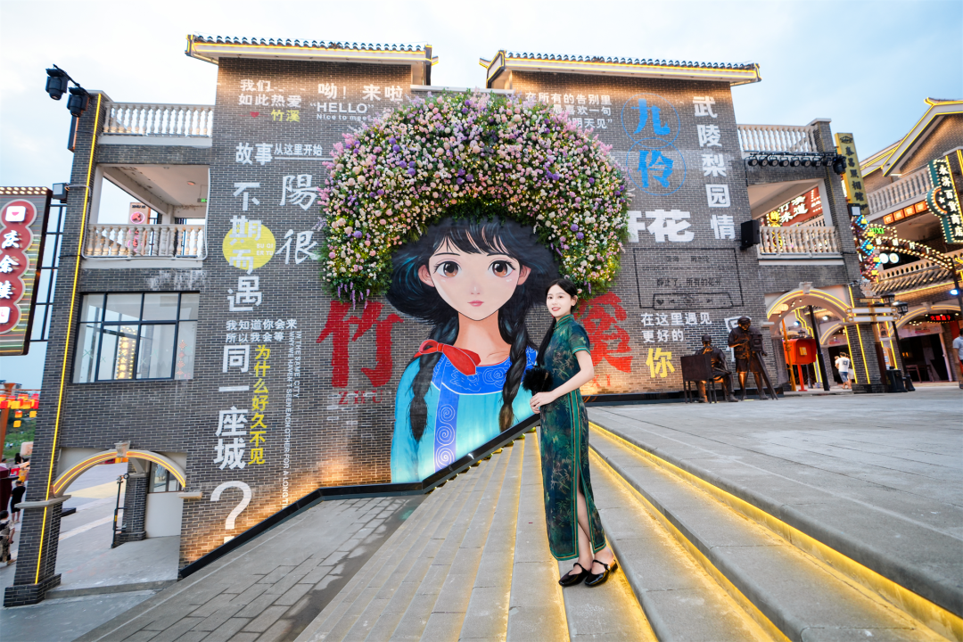 復(fù)古電影海報外立面,青磚灰瓦間流淌老唱片的旋律,民國照相館、竹溪電報局鱗次櫛比,每一處都讓人拍個不停。